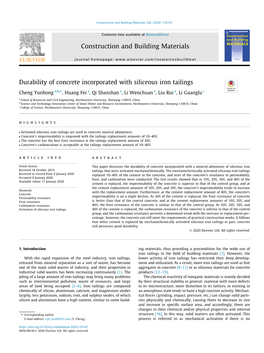 与硅质铁尾矿结合的混凝土的耐久性外文翻译资料