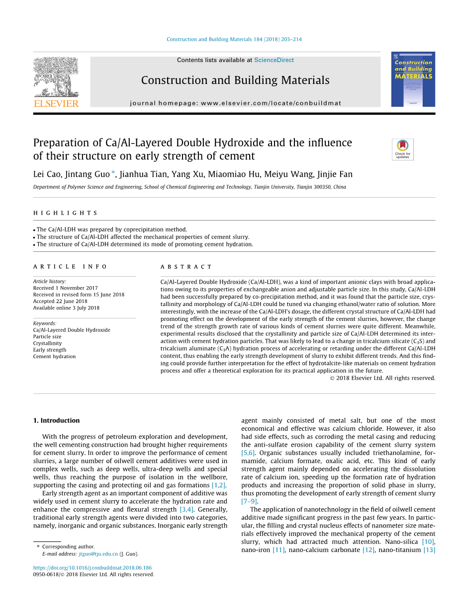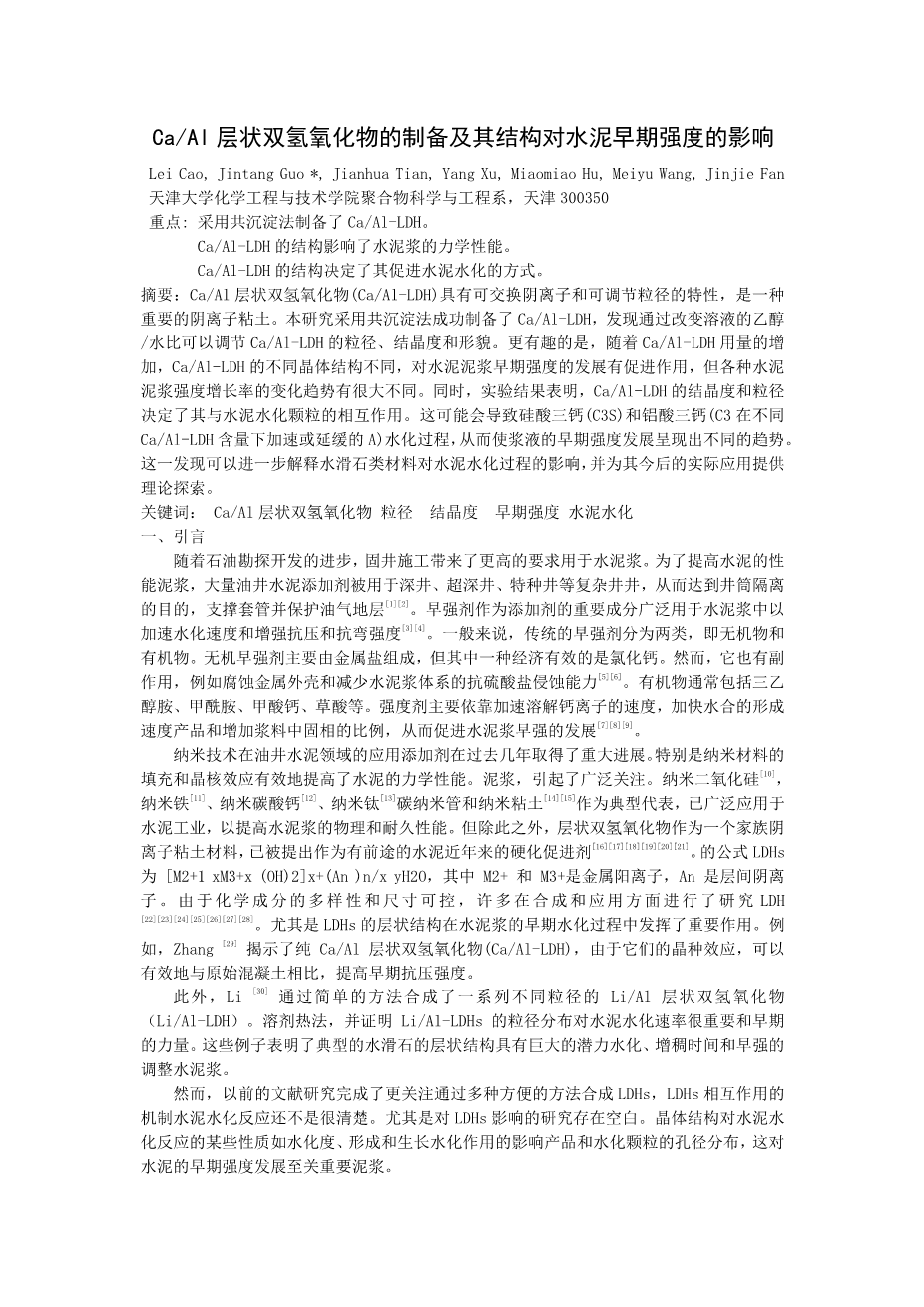 Ca/Al层状双氢氧化物的制备及其结构对水泥早期强度的影响外文翻译资料