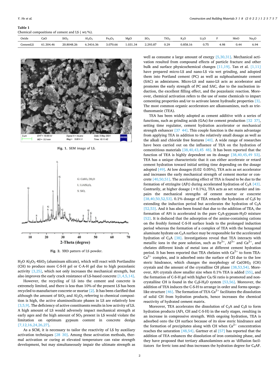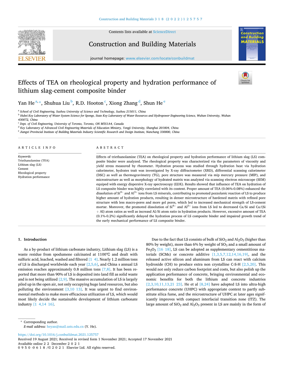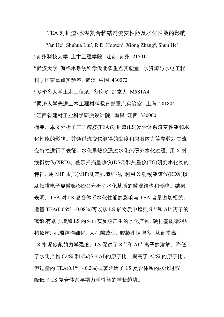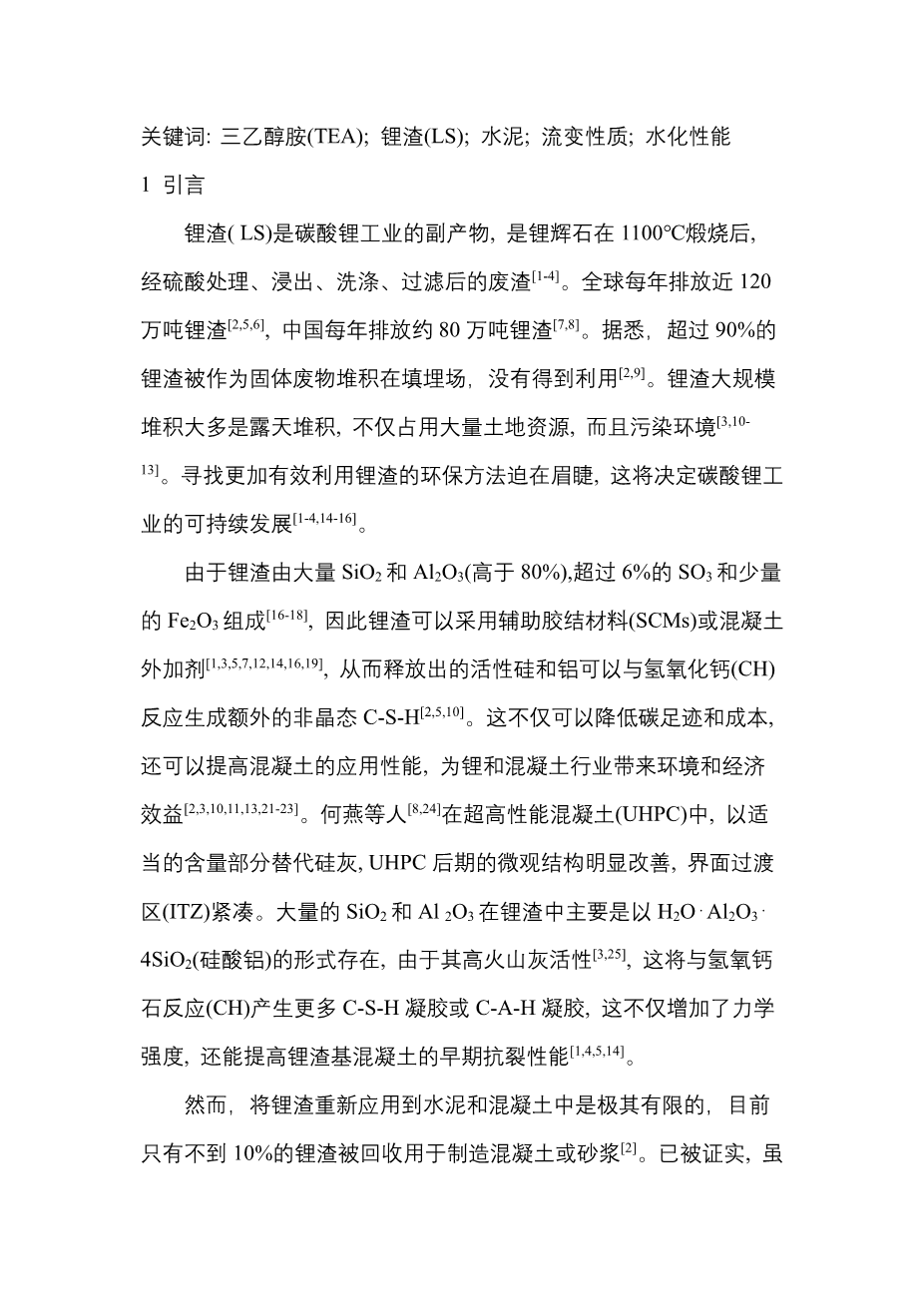 TEA对锂渣-水泥复合粘结剂流变性能及水化性能的影响外文翻译资料