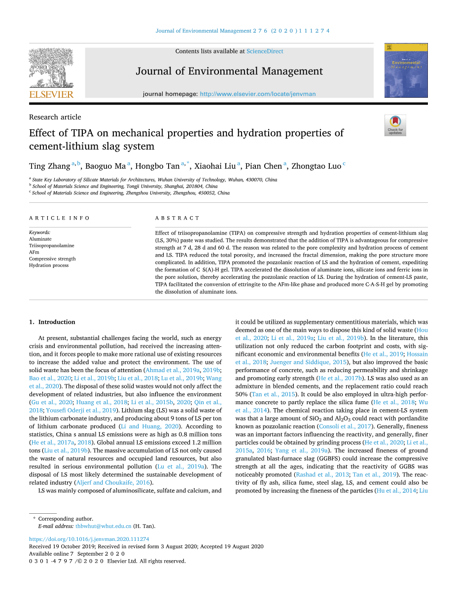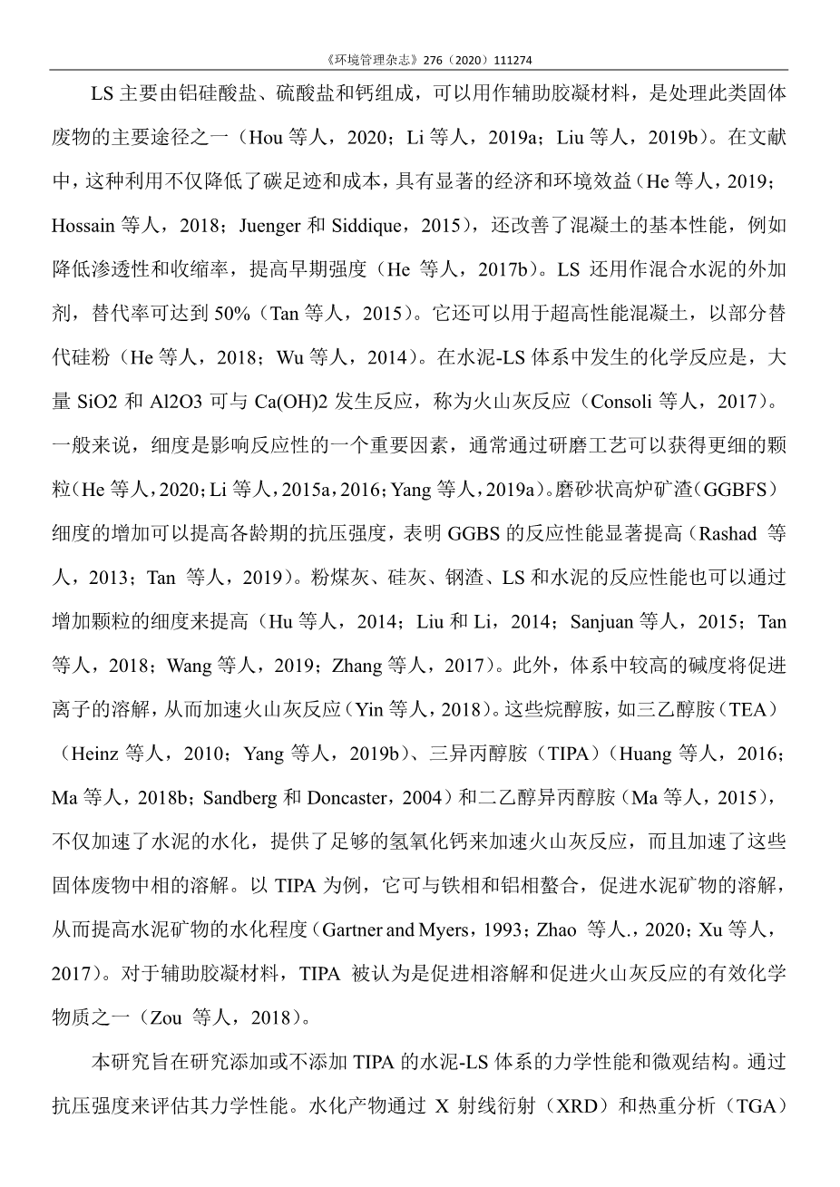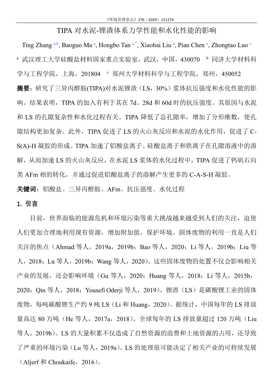 TIPA对水泥-锂渣体系力学性能和水化性能的影响外文翻译资料