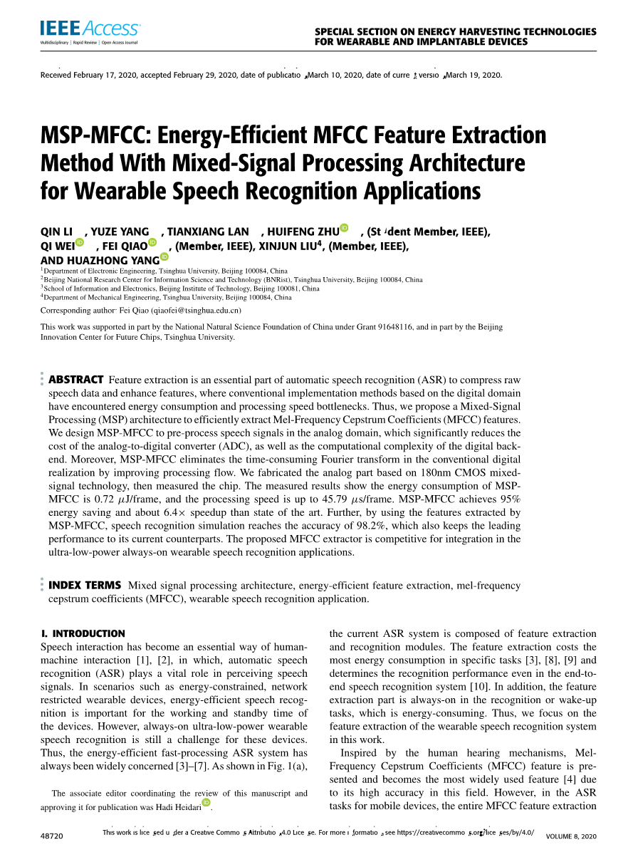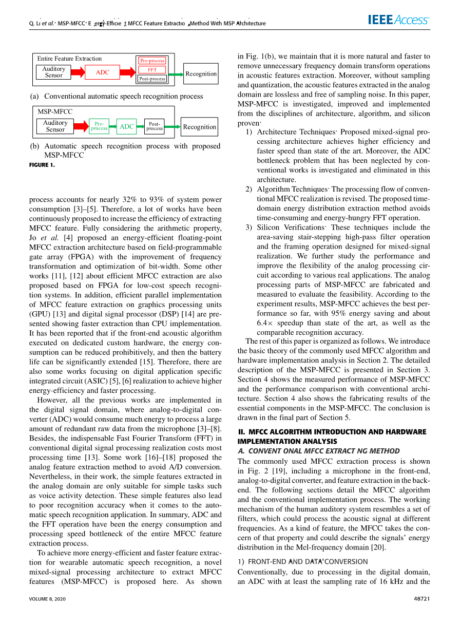 MSP-MFCC:具有可穿戴式语音识别应用的混合信号处理架构的高效MFCC特征提取方法