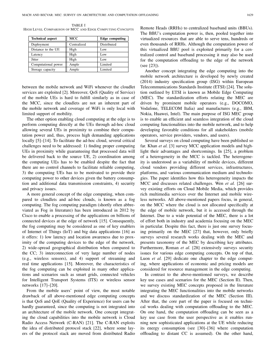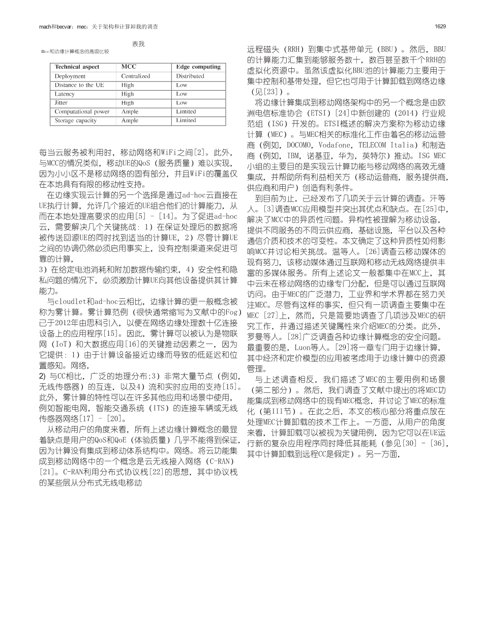 移动边缘计算:架构和计算卸载的调查外文翻译资料