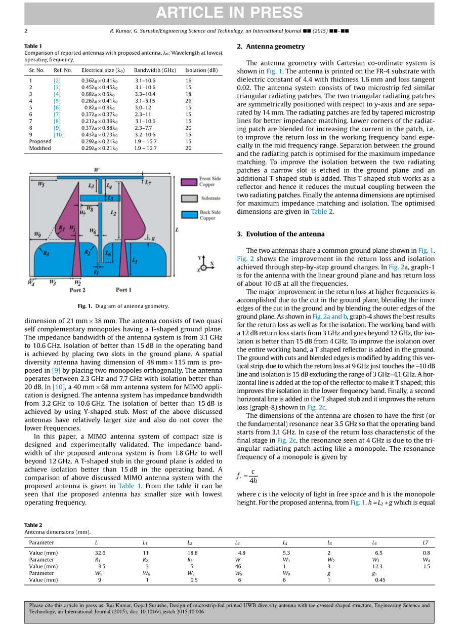 三通交叉形结构的微带馈送印刷超宽带分集 天线设计外文翻译资料
