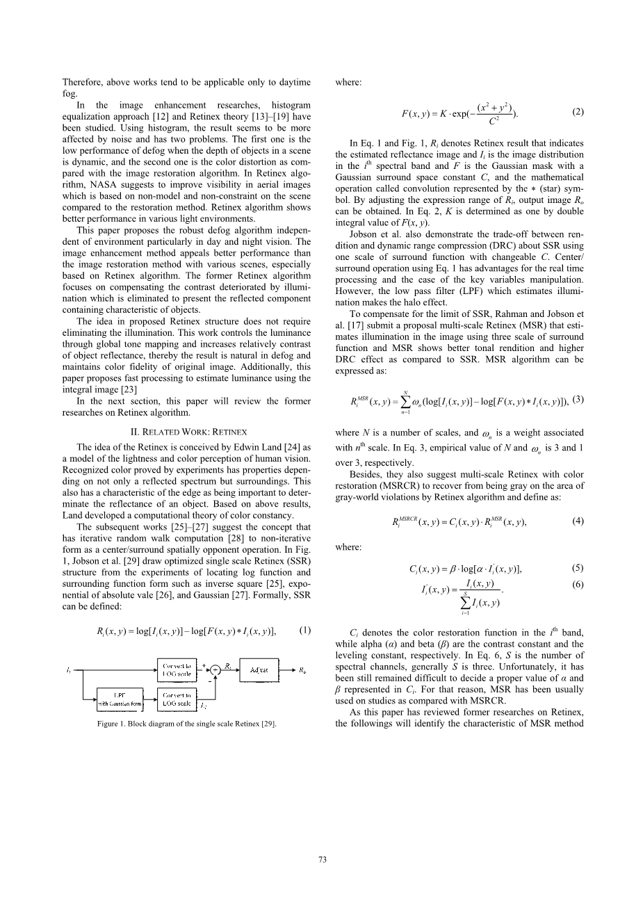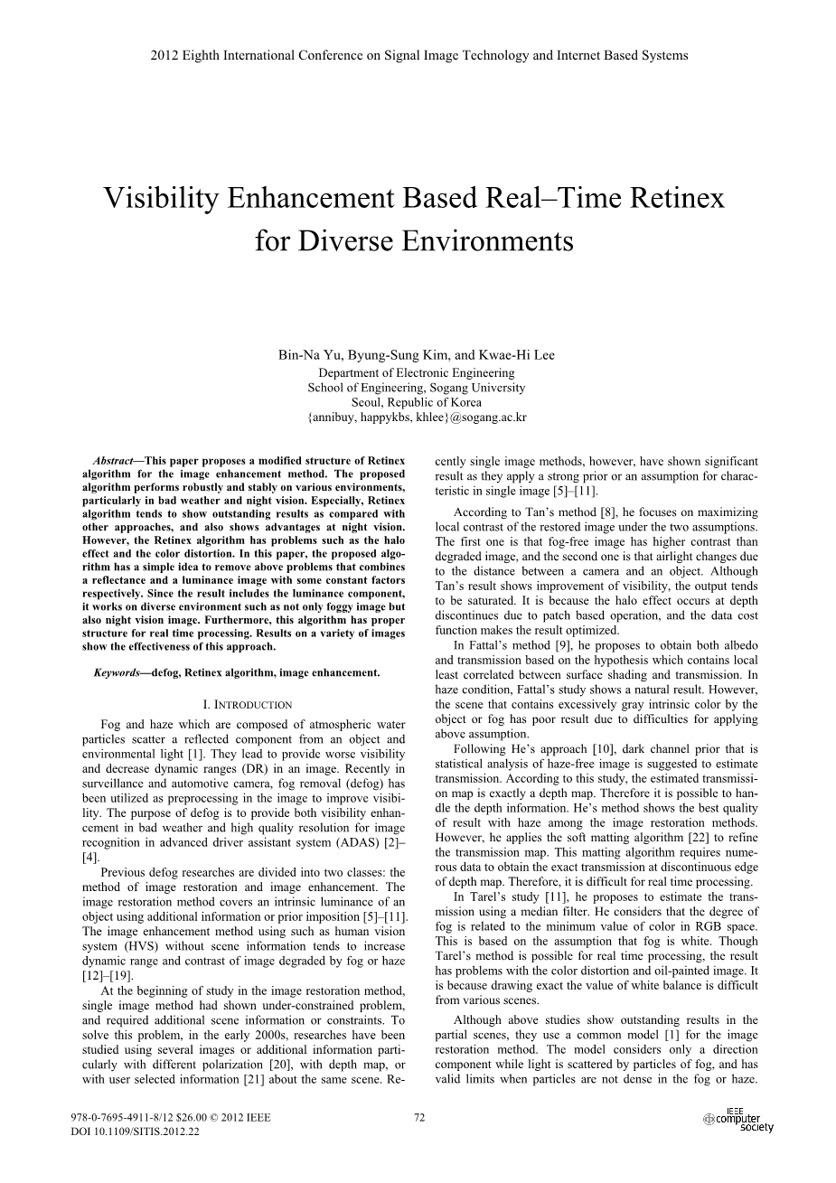 不同环境中实时Retinex的可见度增强外文翻译资料