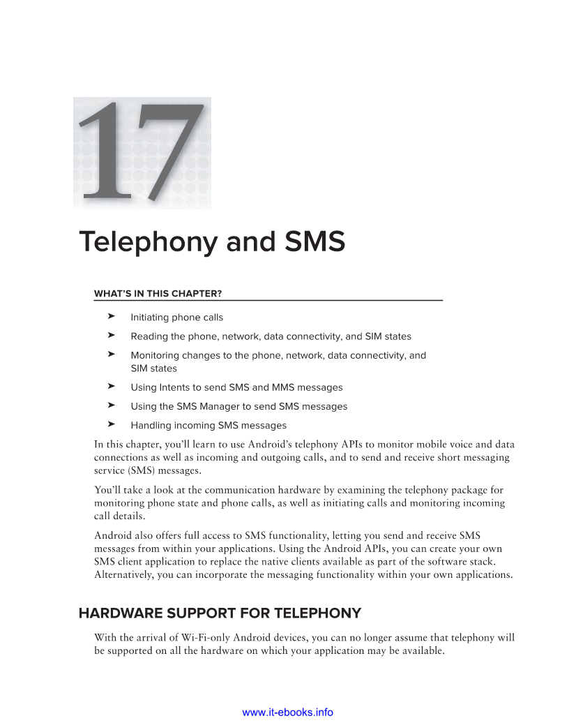 17.3.2 使用Intent从应用程序中发送SMS和MMS 17