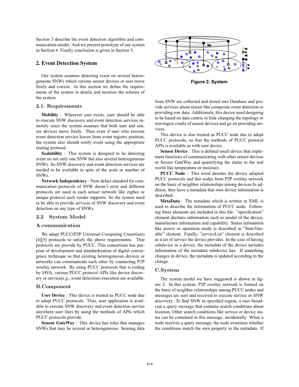我们的系统假设在各种传感器设备或用户自由移动和共存的异构传感器网络上的事件检测。在本节中,我们定义详细的系统需求和系统的模式。rsquo; 一一一一一一一