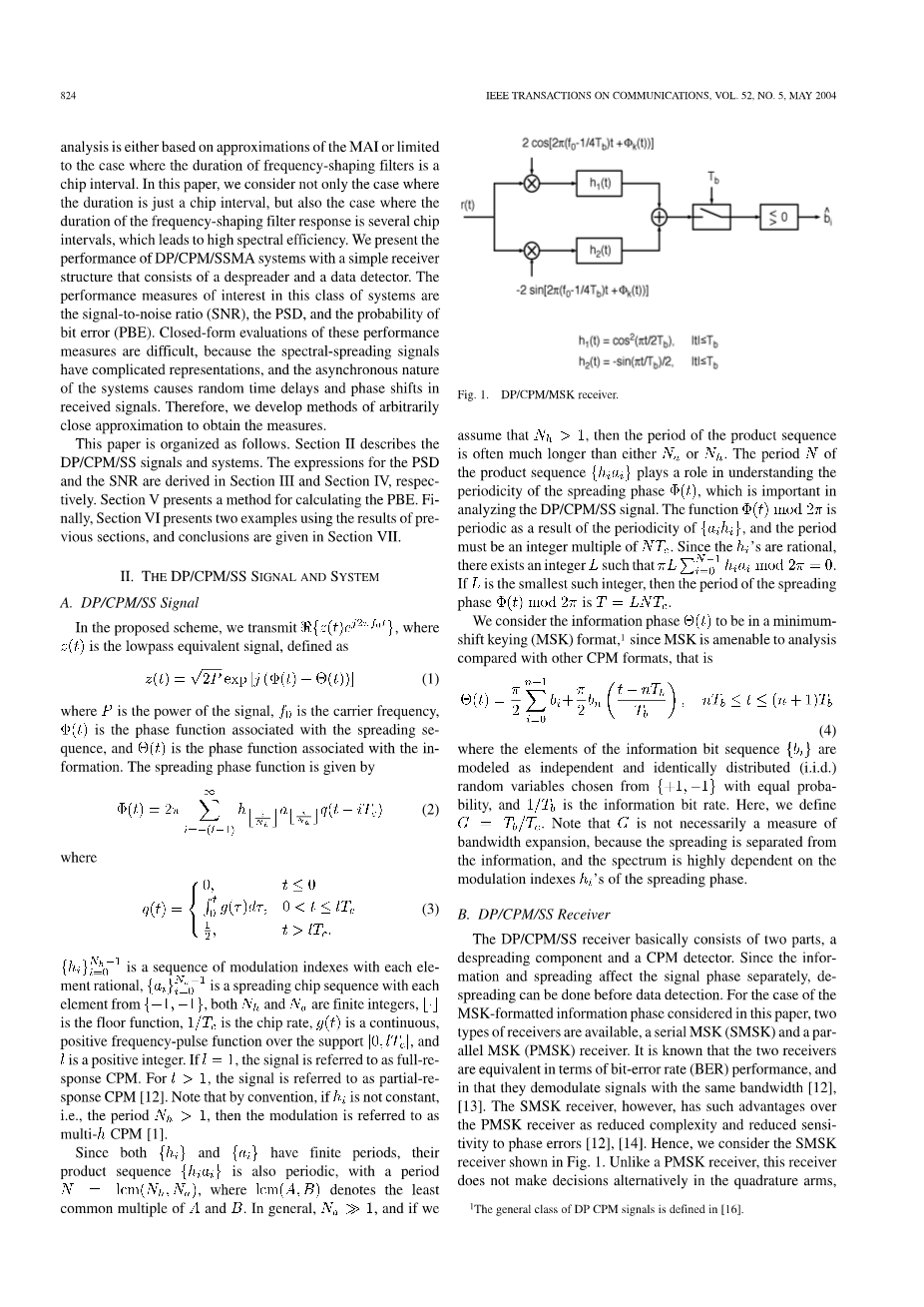 本文的组织结构如下。 第二节描述DP / CPM / SS信号和系统。 PSD和SNR的表达式分别在第三节和第四节中得出。 第五节提出了一种计算PBE的方法。 最后,第六节提出了两个使用前几节结果的例子,结论见第七节。