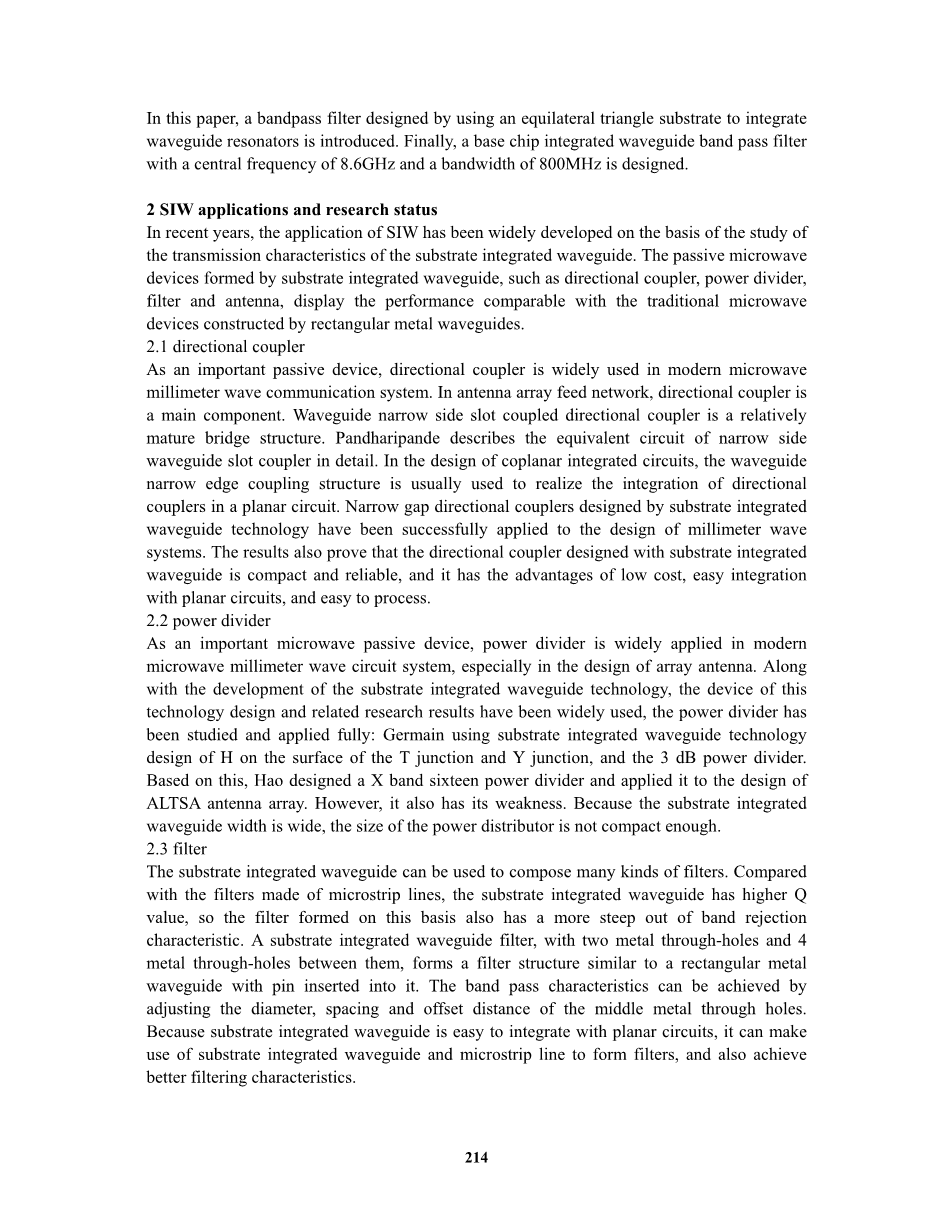 on Substrate Integrated Waveguide (SIW) [C]. IEEE MTT-S International Microwave Symposium, Long