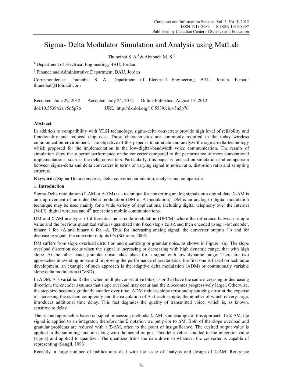 函授:Thuneibat s。,约旦,BAU,电子工程系。电子邮件:thuneibat@Hotmail.com