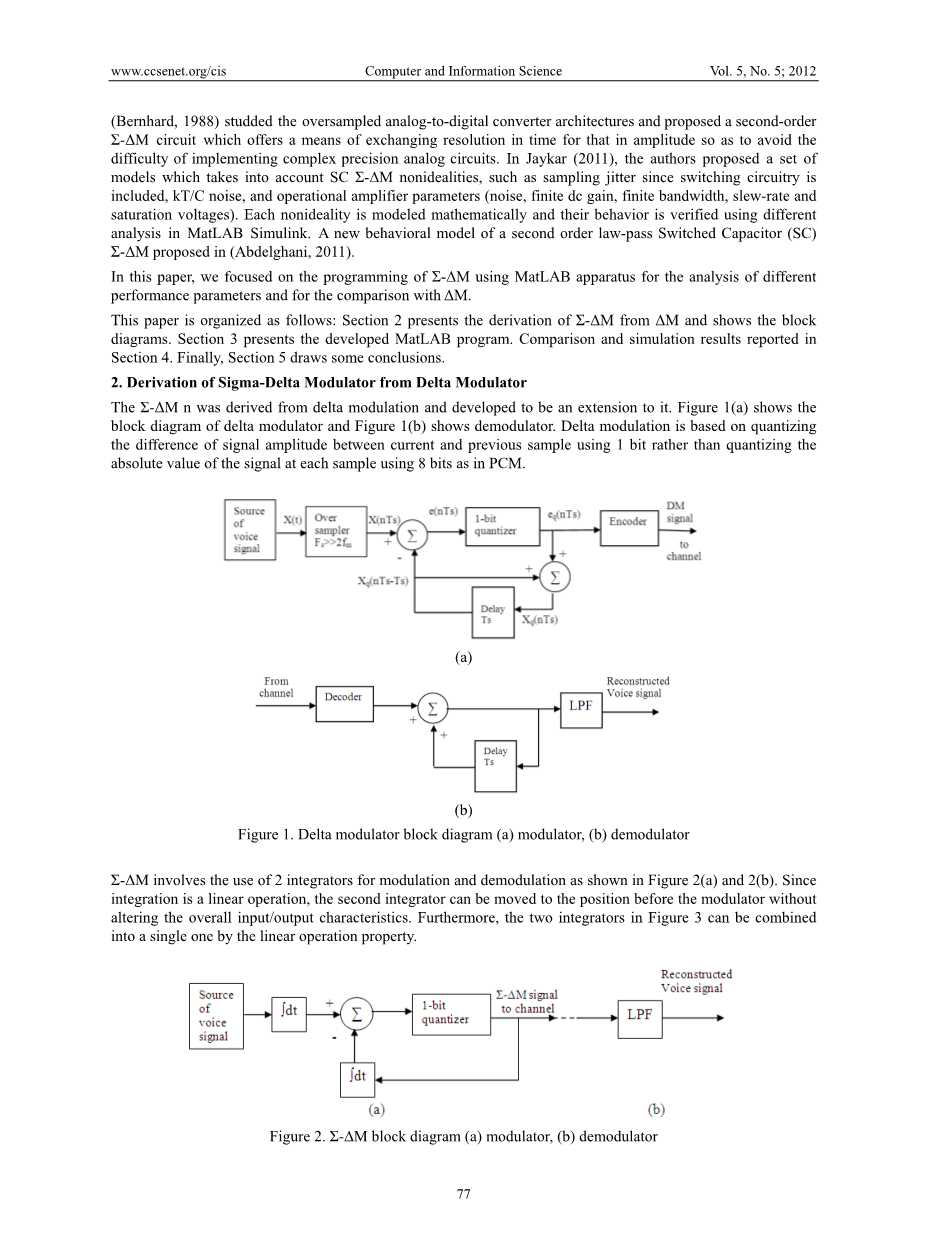 本文的组织结构如下:第二节介绍了推导的Sigma;-Delta;MDelta;M和显示了方框图。第3节介绍了开发的MatLAB程序。第4节的比较和模拟结果。最后,第五节得出一些结论。