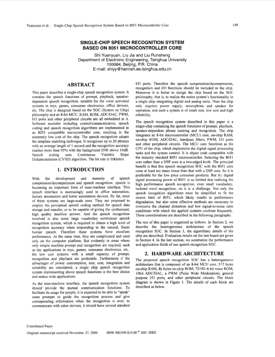 基于8051单片机的单芯片语音识别系统外文翻译资料