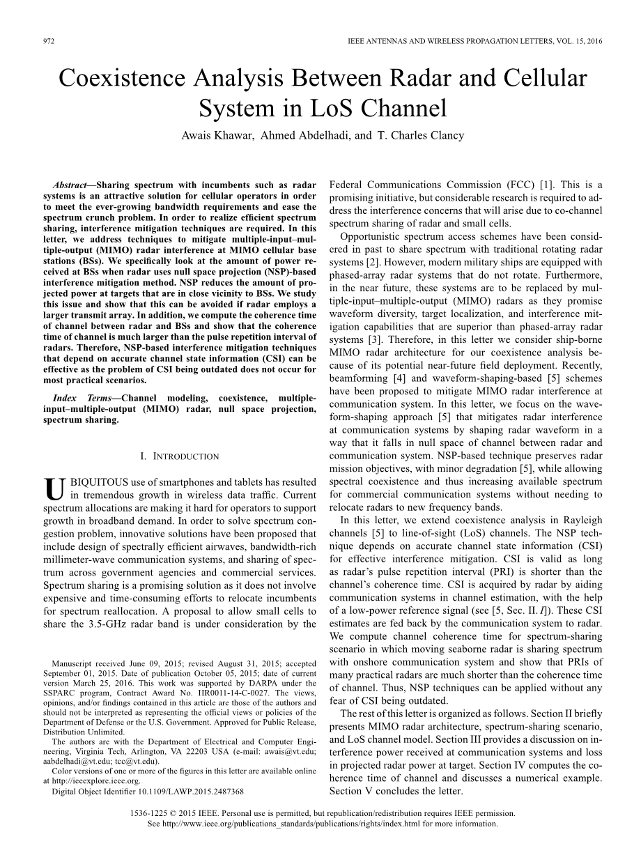 LOS信道雷达与蜂窝系统共存分析外文翻译资料