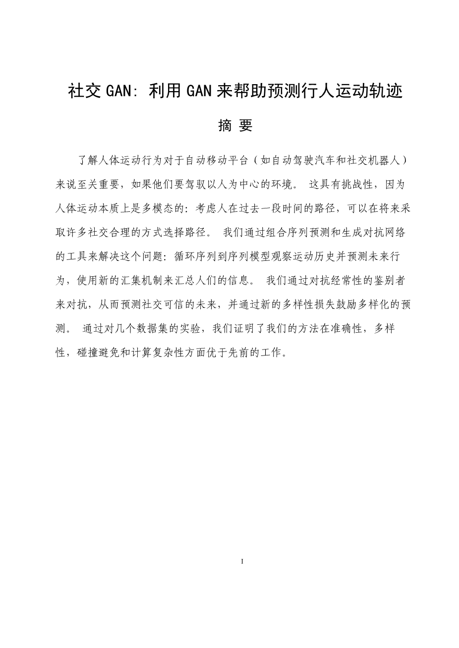 社交GAN:利用GAN来帮助预测人运动轨迹外文翻译资料