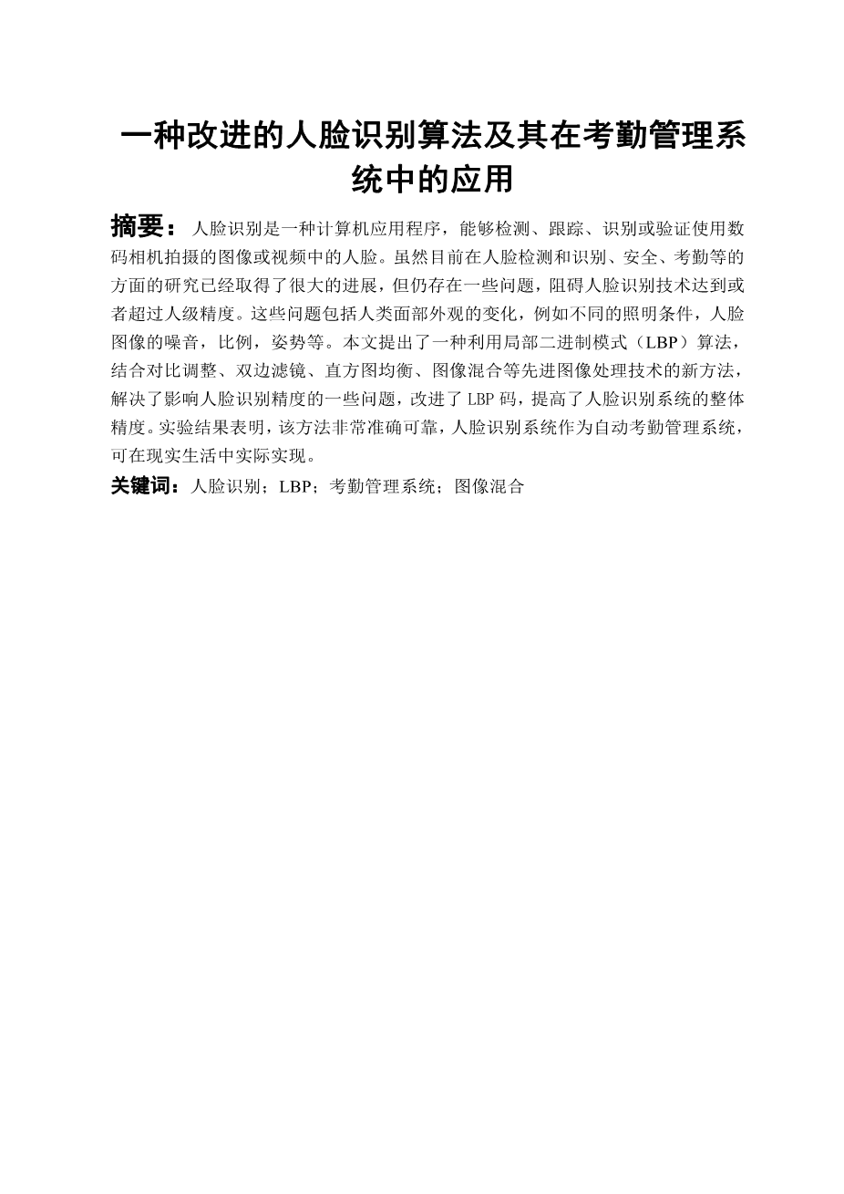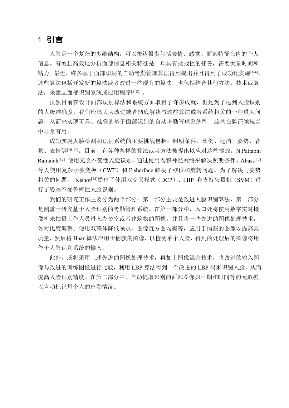 一种改进的人脸识别算法与其中在考勤管理系统中的应用外文翻译资料