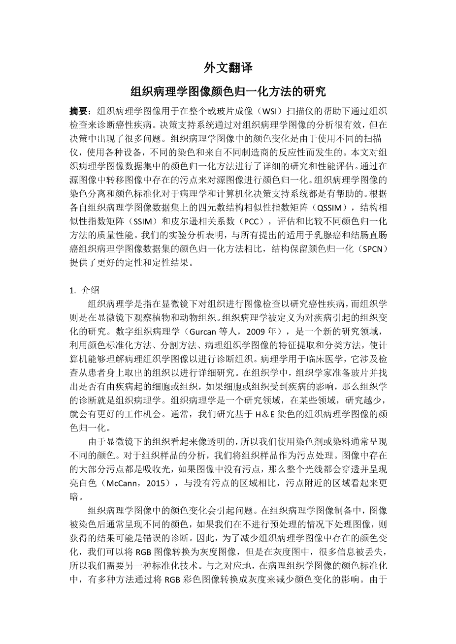 组织病理学图像颜色归- -化方法的研究外文翻译资料