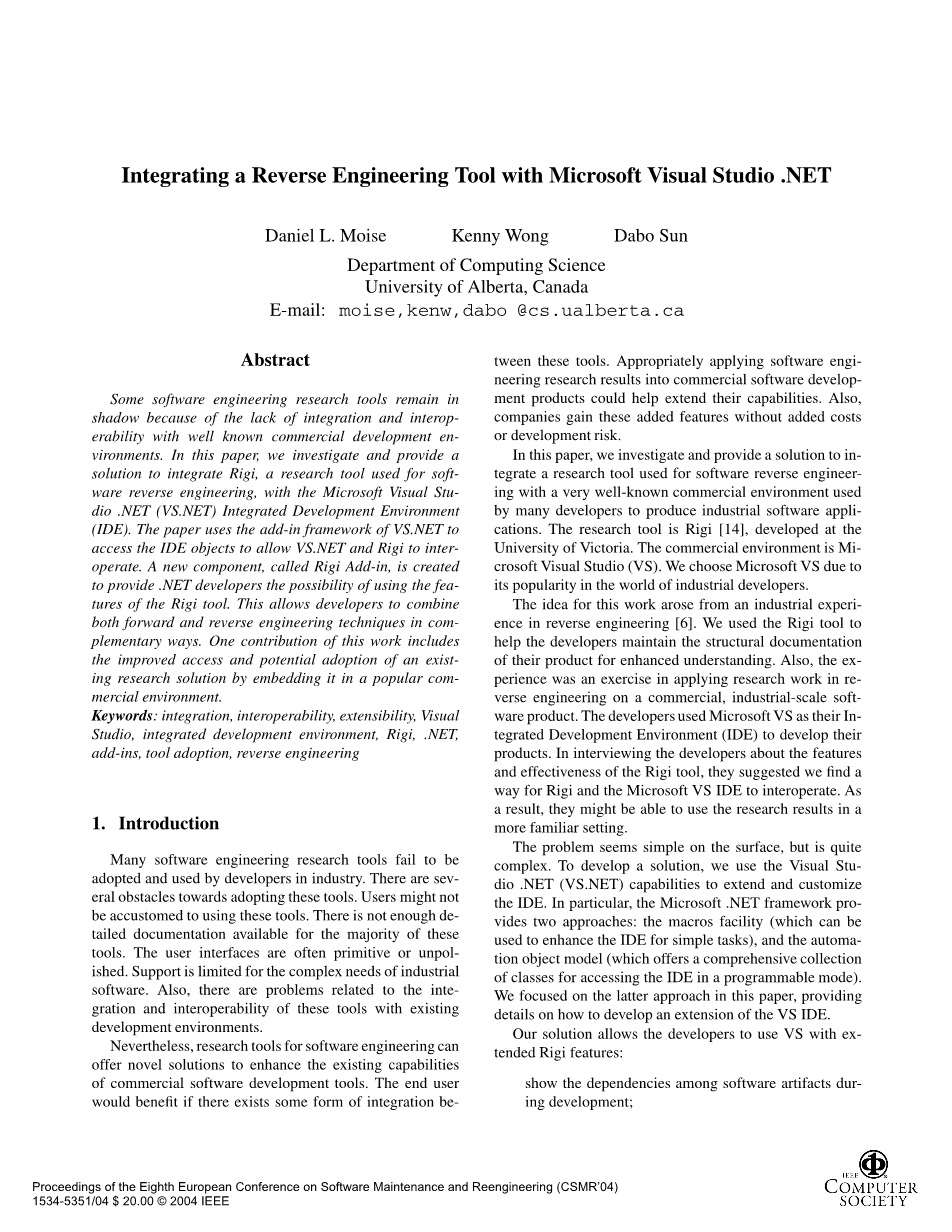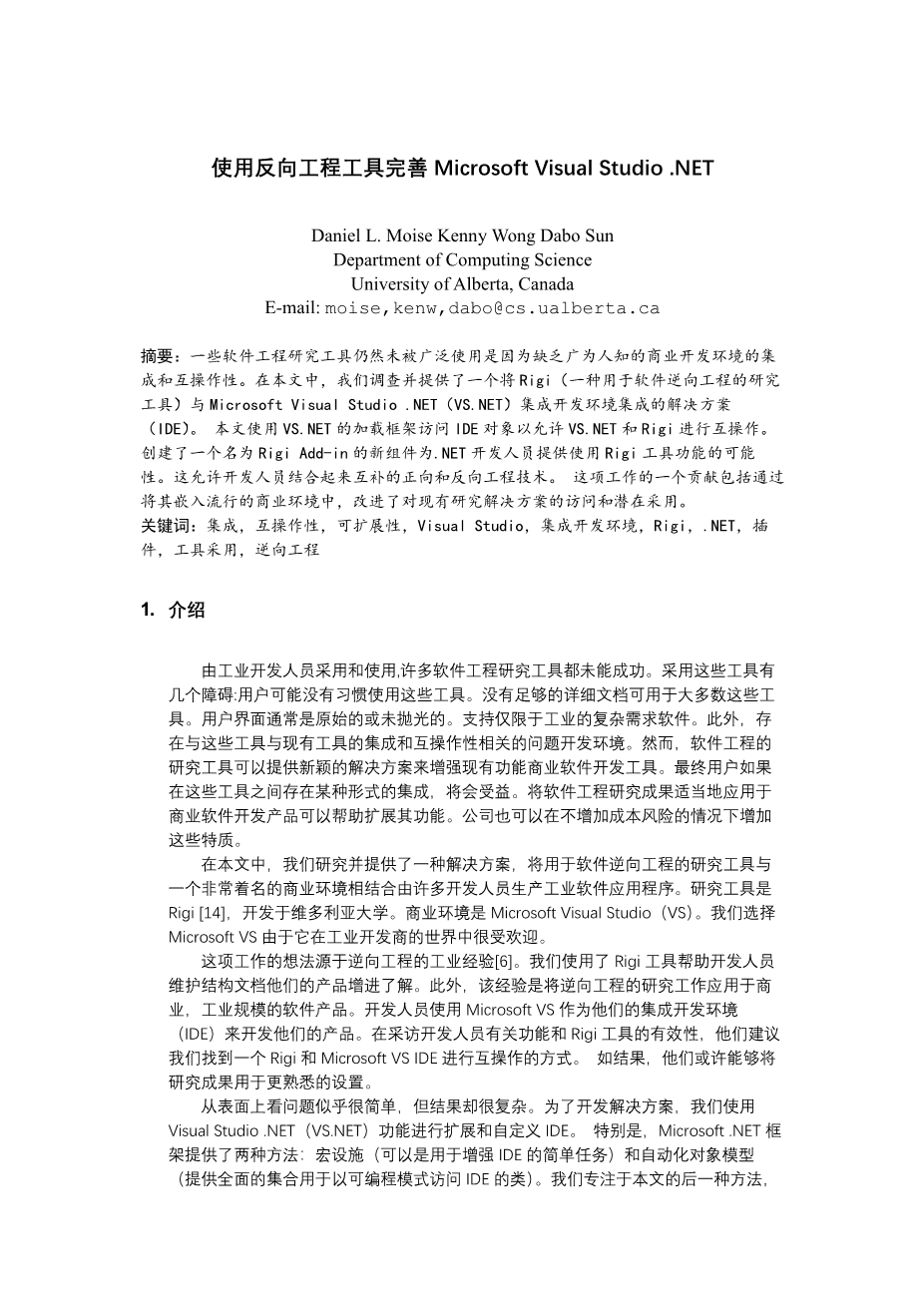 使用反向工程工具完善Microsoft Visual Studio .NET外文翻译资料