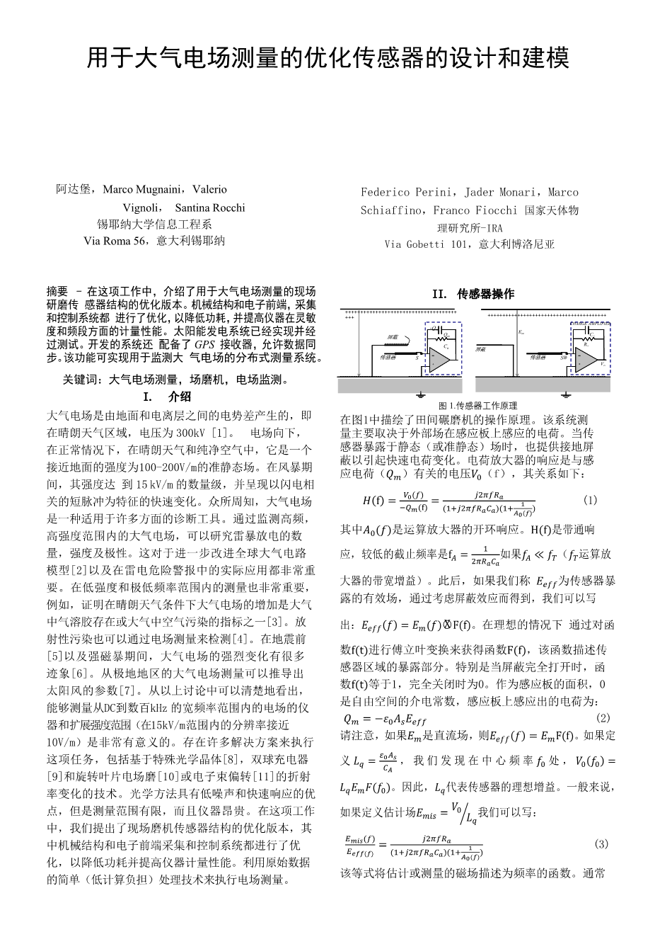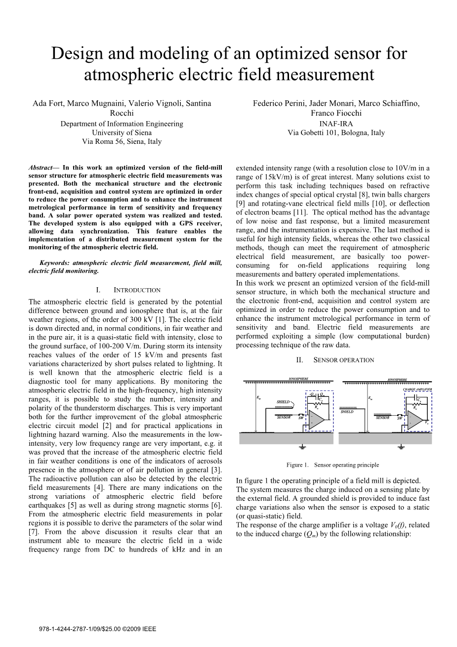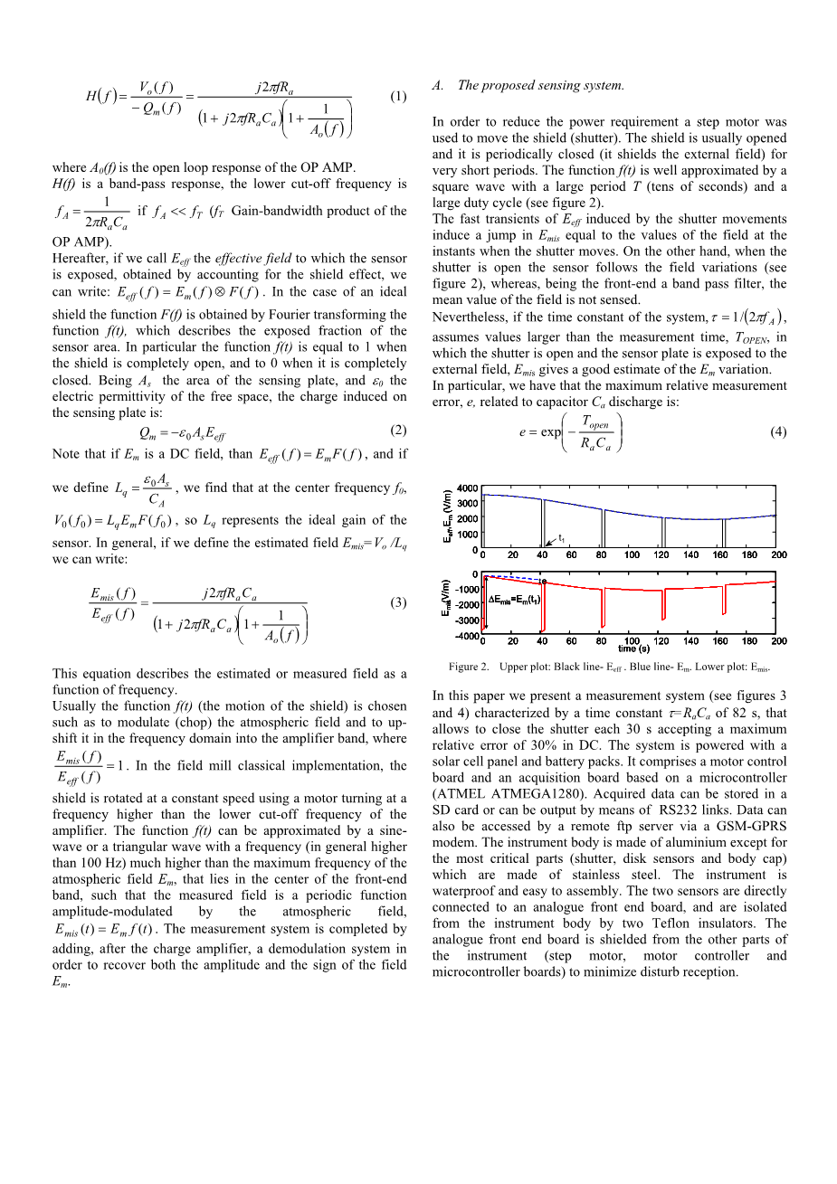 用于大气电场测量的优化传感器的设计和建模外文翻译资料