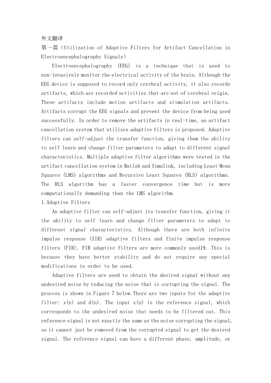 自适应滤波器用于脑电图信号中的伪影消除外文翻译资料