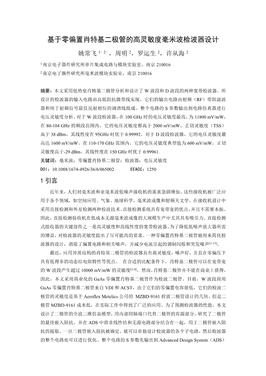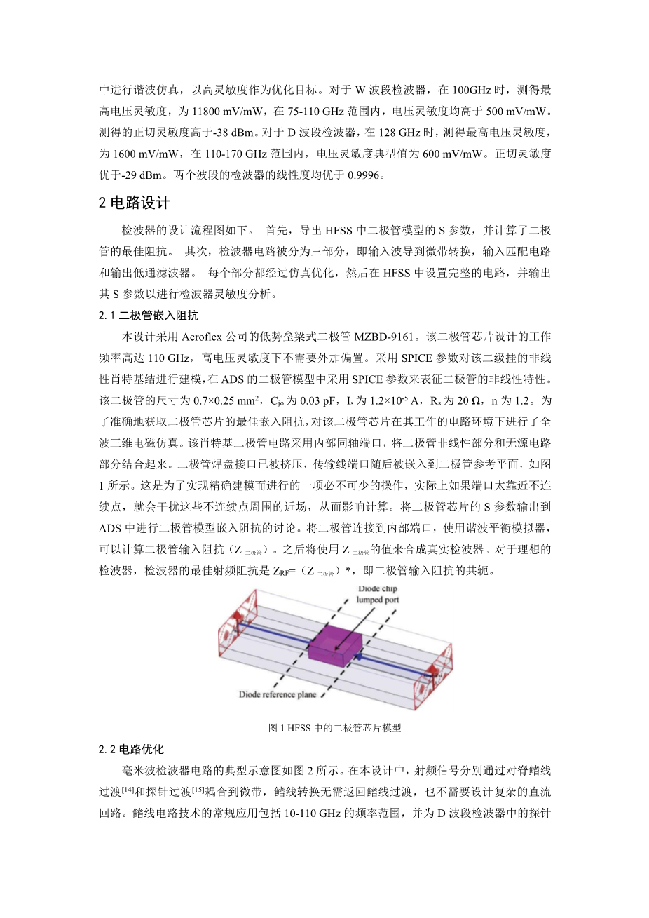 基于零偏置肖特基二极管的高灵敏度毫米波检波器设计外文翻译资料
