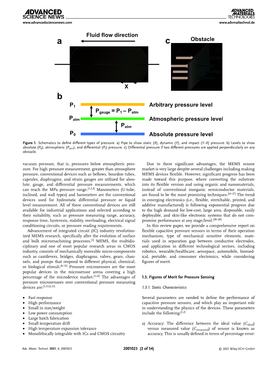 在这篇综述文章中,我们就柔性电容压力传感器的工作机制、机械敏感元件的类型、用于导电电极之间的分离间隙的材料以及在机器人、可穿戴/医疗保健等不同技术领域的应用进行了全面的报告。航空航天、汽车、生物医学、便携式和消费电子产品,同时考虑品质因数。