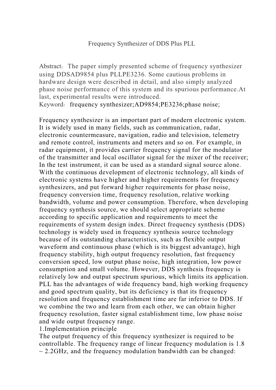基于DDS PLL技术的频率合成源设计外文翻译资料