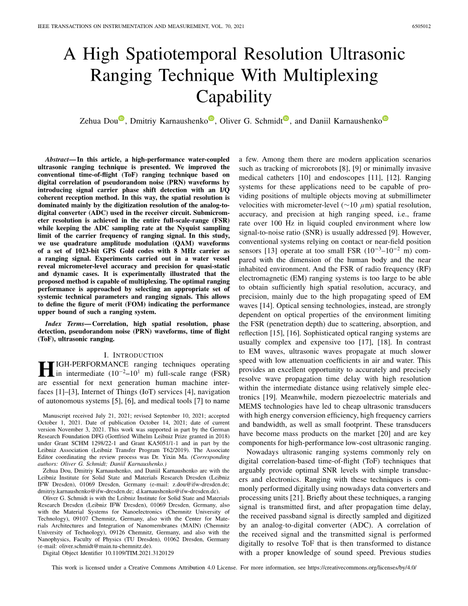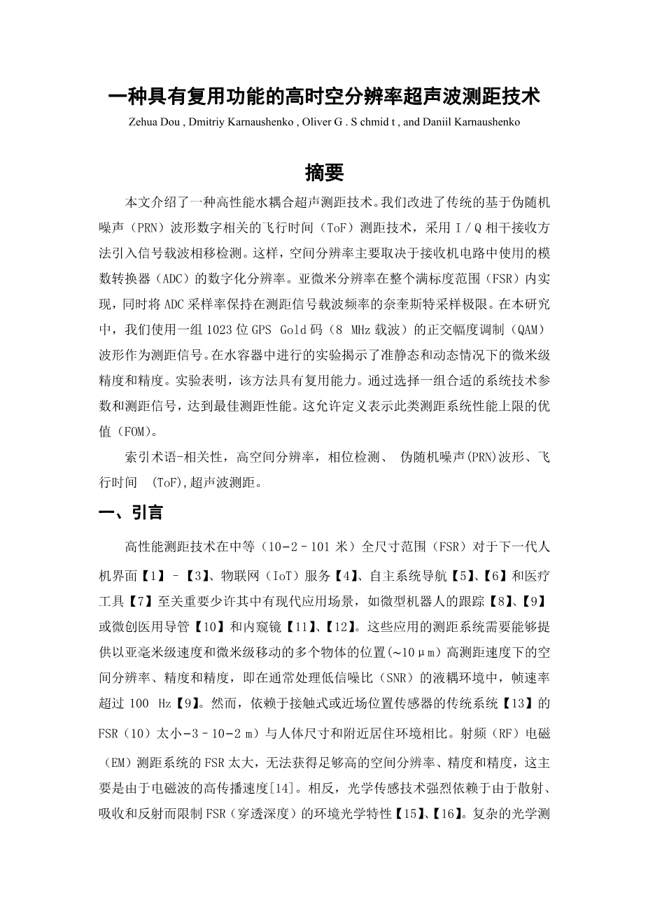 一种具有复用功能的高时空分辨率超声波测距技术外文翻译资料