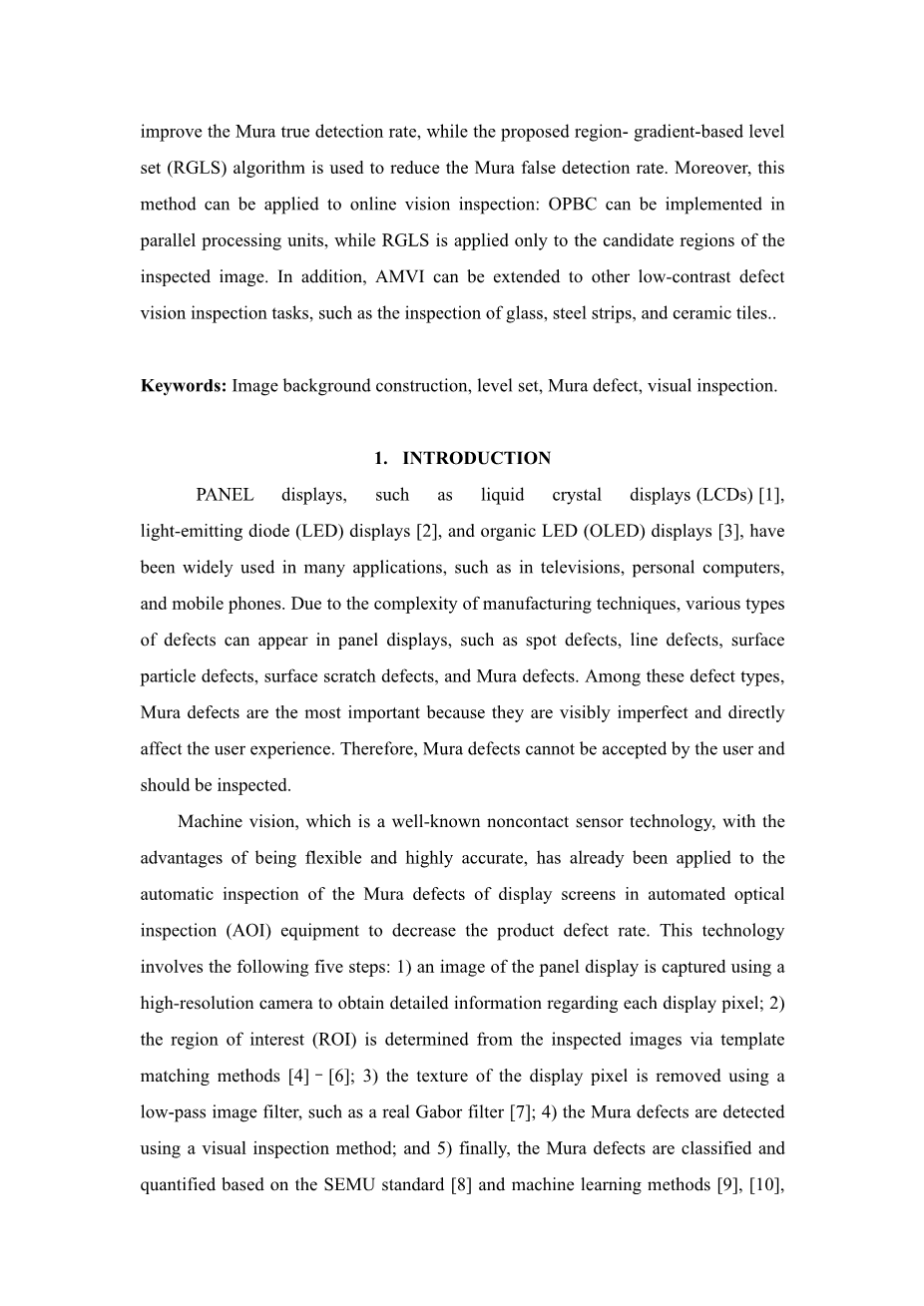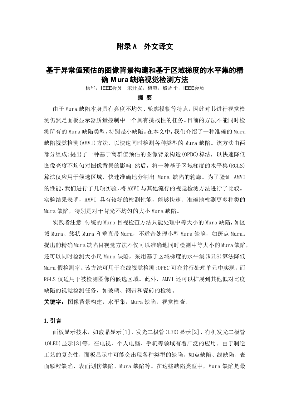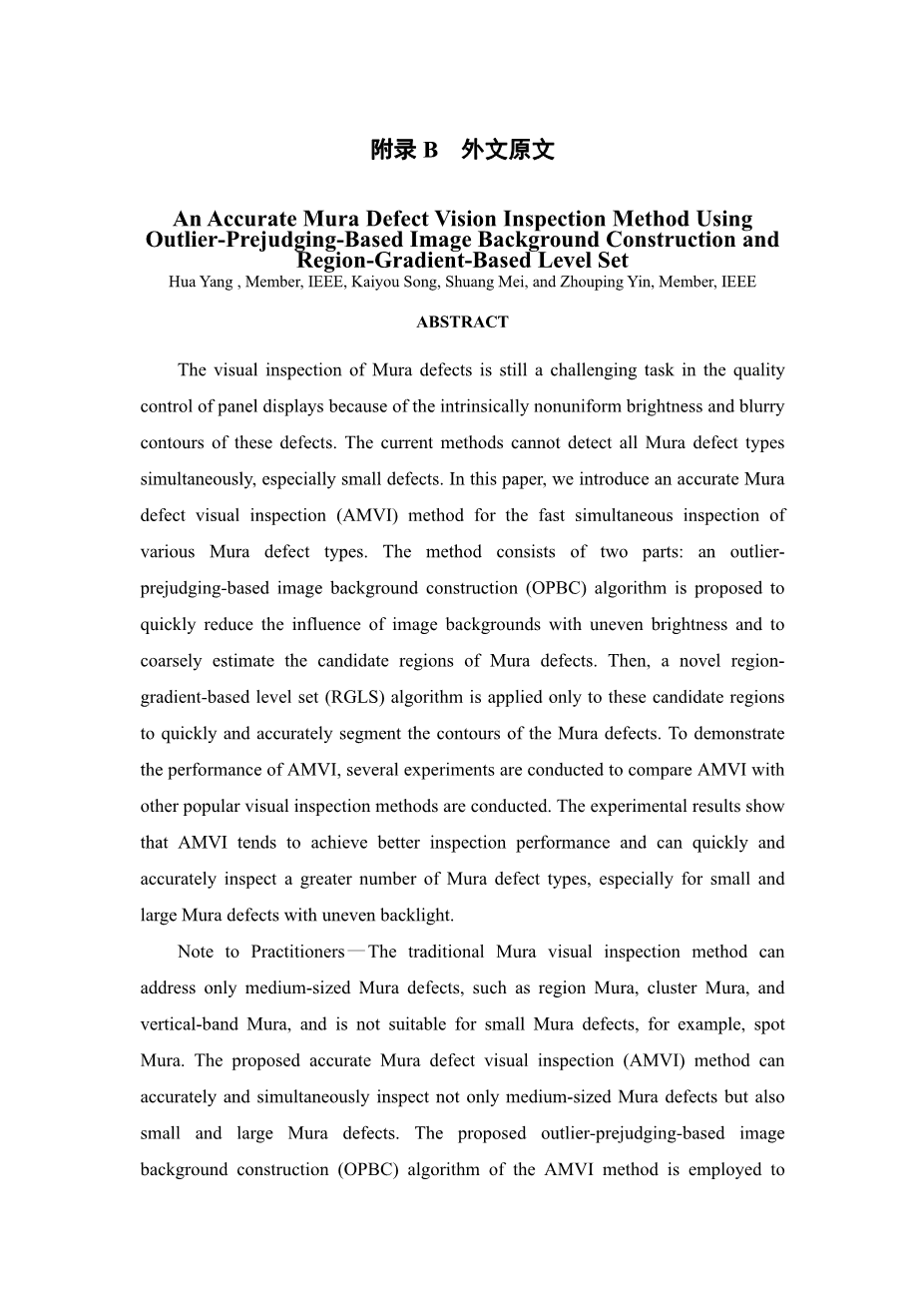 基于异常值预估的图像背景构建和基于区域梯度的水平集的精确M ura 缺陷视觉检测方法外文翻译资料