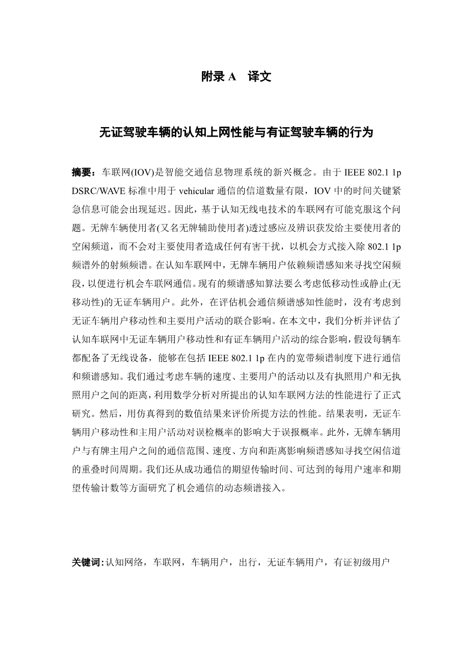 无证驾驶车辆的认知上网性能与有证驾驶车辆的行为外文翻译资料