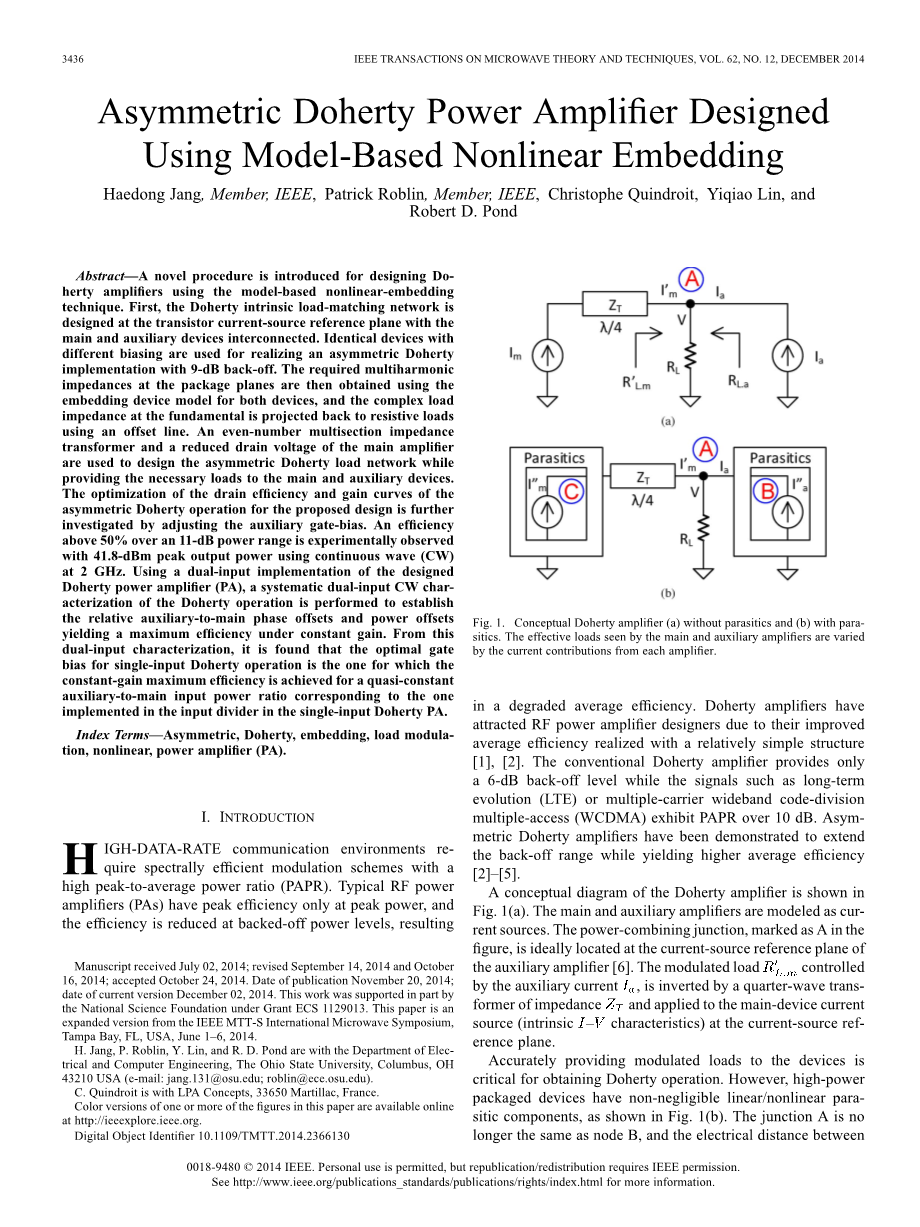 Haedong Jang,IEEE会员,Patrick Roblin,IEEE会员,Christophe Quindroit,Yiqiao Lin和Robert D. Pond