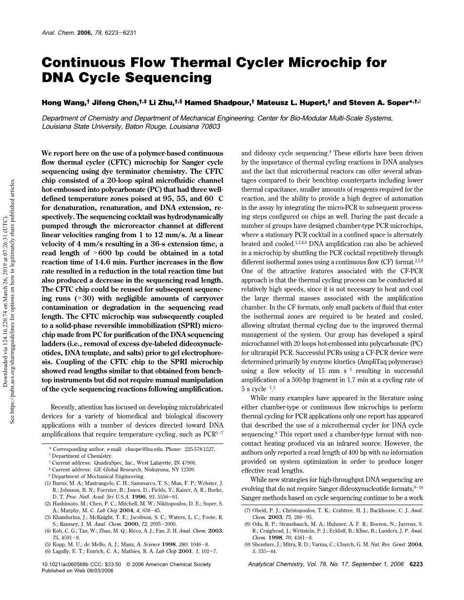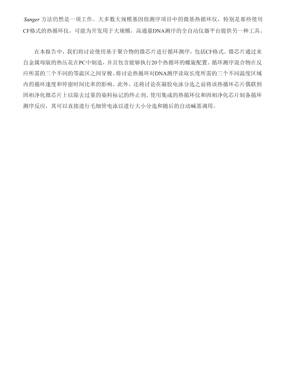 用于DNA循环测序的连续流动热循环仪微芯片外文翻译资料