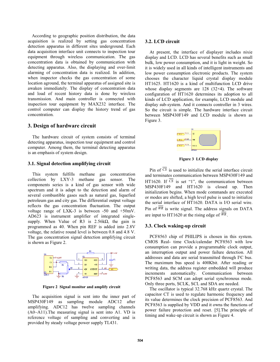 因为煤矿开采是在地下进行的。现场设备很难维护。所以,我们选择低功耗、高稳定性的芯片。有很多种低功耗的单片机;TI的MSP430系列具有良好的应用效果和高性价比,因此受到工程师的关注。MSP430系列的CPU工作电压为1.8 v ~ 3.6 v。并且有一种活跃模式(AM)和5种低功耗模式(LPM0-LPM4)。工作电流是很小的。本系统采用LPM3的工作模式。当时钟关闭的时候最小电流只有0.8mu;A。MSP430系列的单片机可以在各种工作模式之间灵活转换。中断没有发生时它处于低功耗状态。但是当事故发生时,中断会以6mu;s的频率使得CPU工作,当事故结束时,CPU将处于低功耗状态[4]。