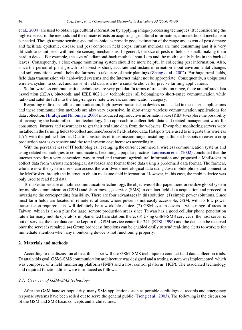 随着IT技术的普及,利用现有的商用无线通信系统和使用相关技术交流正在成为一种流行的实践。劳伦森(2002)等人认为,互联网提供了一个非常方便的阅读方式和传播农业信息和提出MetBroker收集数据从各种计量数据库格式的数据使用一个预定义的数据格式。现在的系统的用户农民,可以访问全球计量数据使用java手机和连接到MetBroker通过互联网实时获取现场信息。然而,在这种情况下,移动设备只用于读取字段数据。