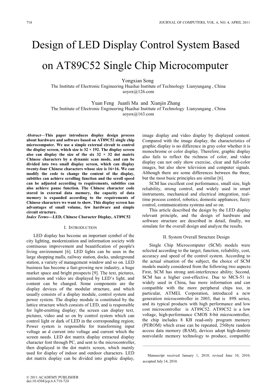 基于AT89C52单片机的LED显示控制系统设计外文翻译资料