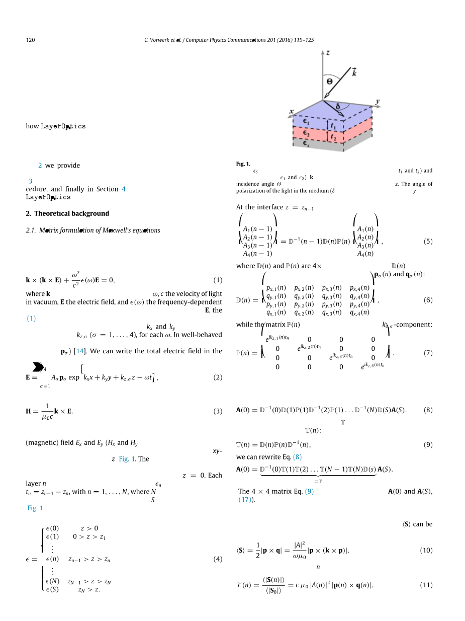 本文的组织结构如下:在第2节中,我们提供了计算菲涅耳系数的理论背景。 在第3节中,我们描述了采用的数值过程,最后在第4节中介绍了LayerOptics在选定示例中的应用。