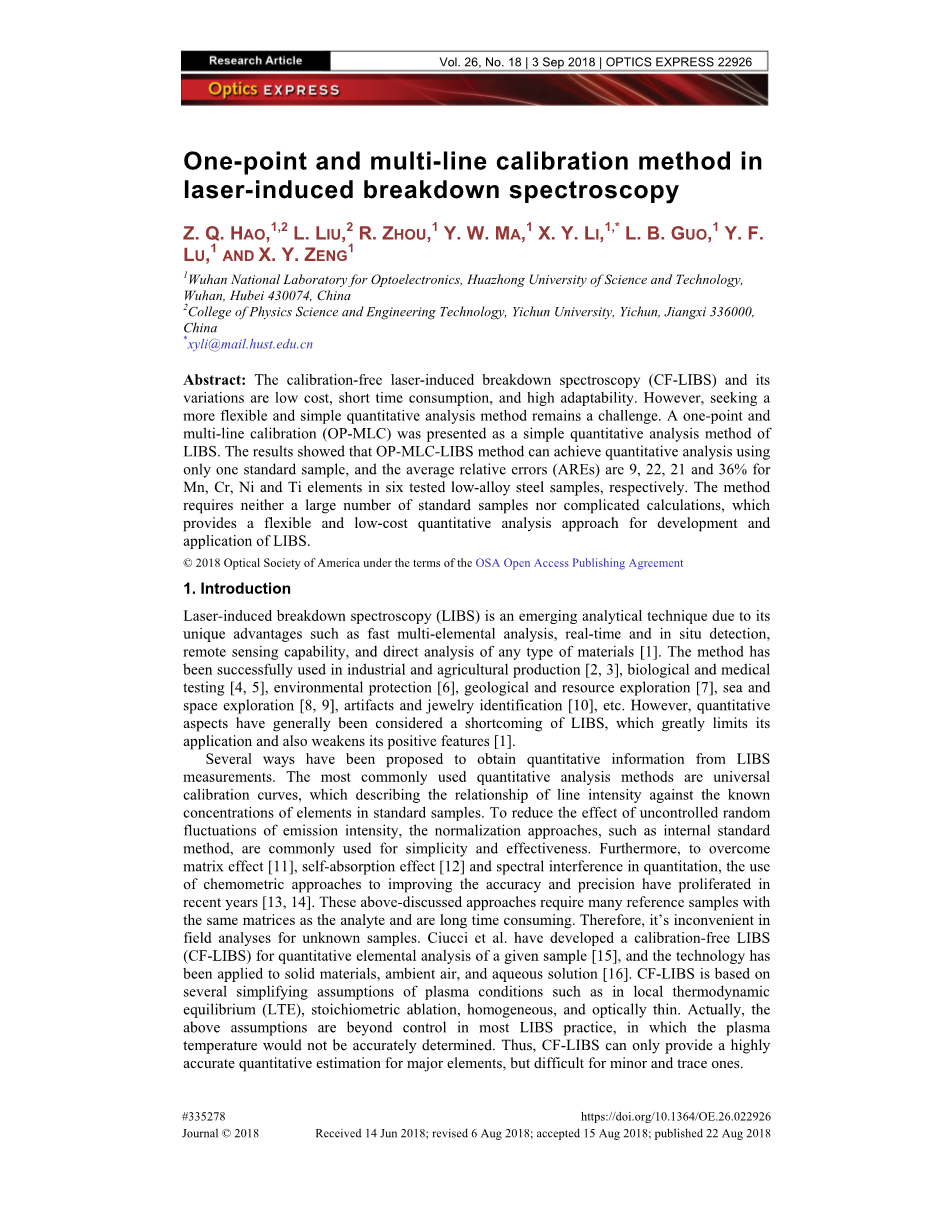 激光诱导击穿光谱的单点多线校准法外文翻译资料