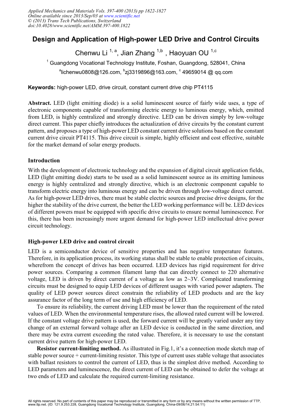 大功率LED驱动和控制电路的设计和应用外文翻译资料