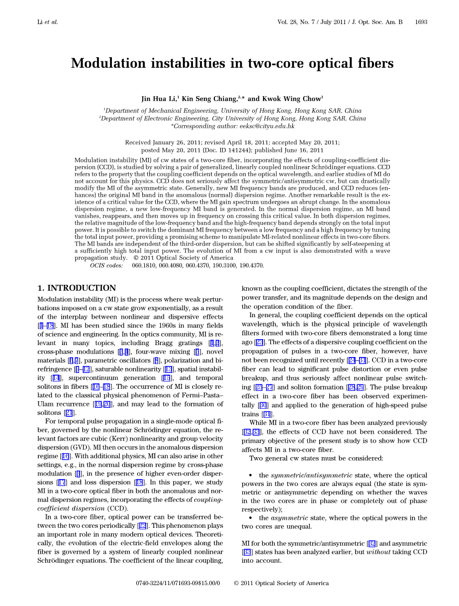 Jin Hua Li, Kin Seng Chiang, and Kwok Wing Chow