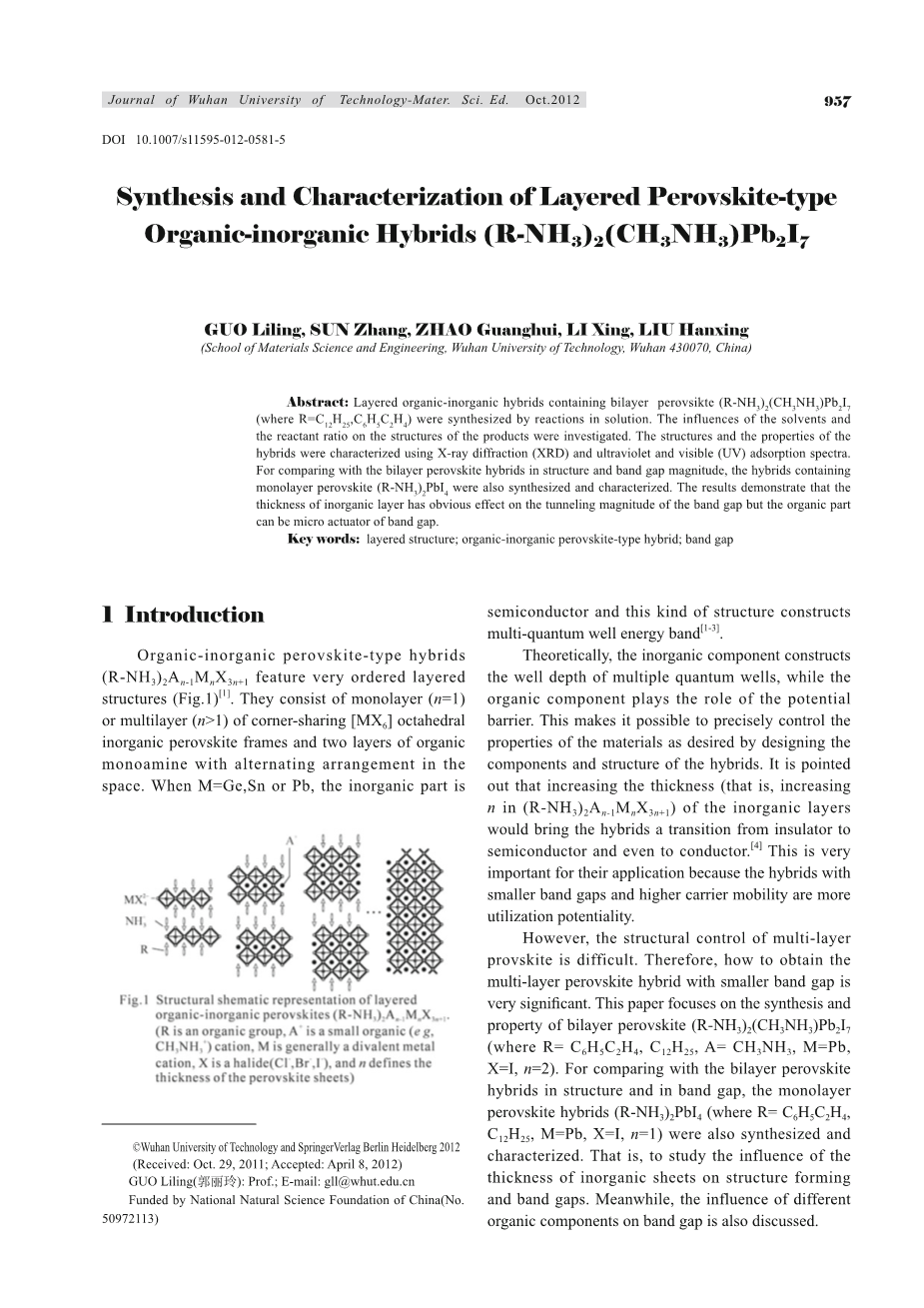 关键词:层状结构;有机-无机钙钛矿型复合材料;带隙