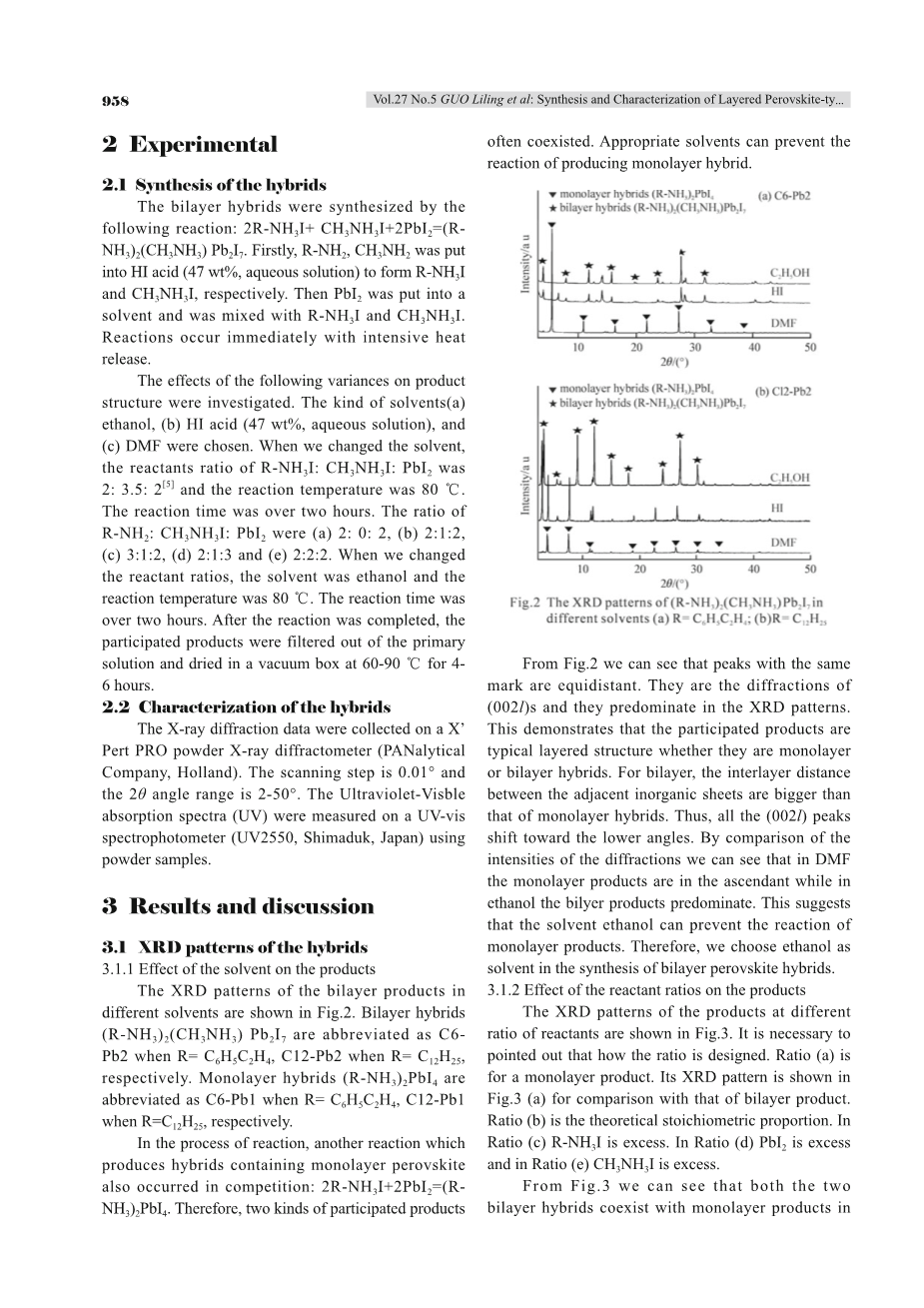 在反应过程中,另一种产生单层钙钛矿的杂化反应也发生在竞争中:2R NH3I 2PbI2=(R- NH3)2PbI4。因此,两种参与的产品共存。适当的溶剂可以防止产生单层杂化反应。