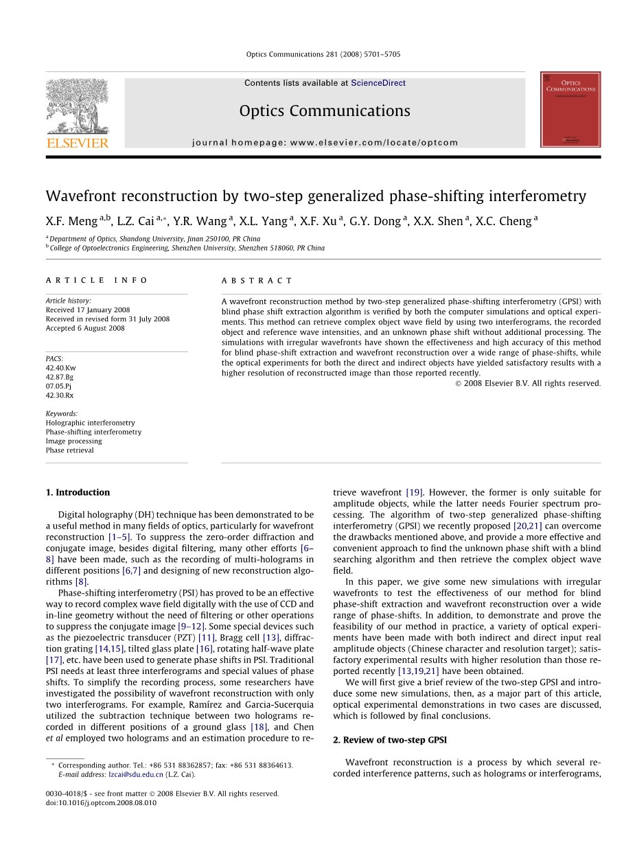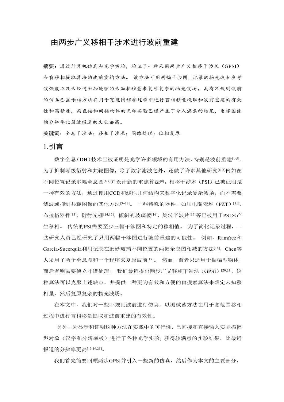 由两步广义移相干涉术进行波前重建外文翻译资料