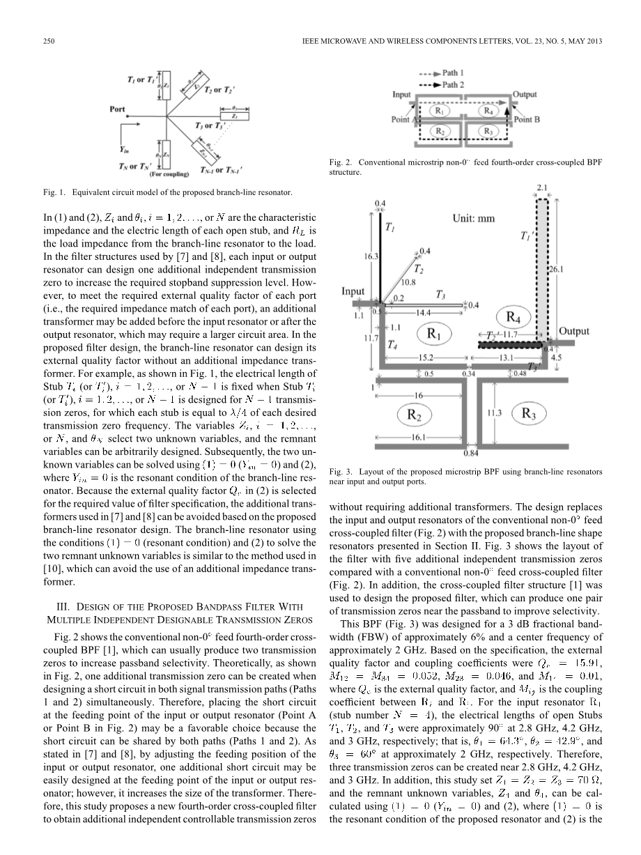 使用分支线谐振器设计具有多个独立可设计传输零点的微带交叉耦合带通滤波器外文翻译资料
