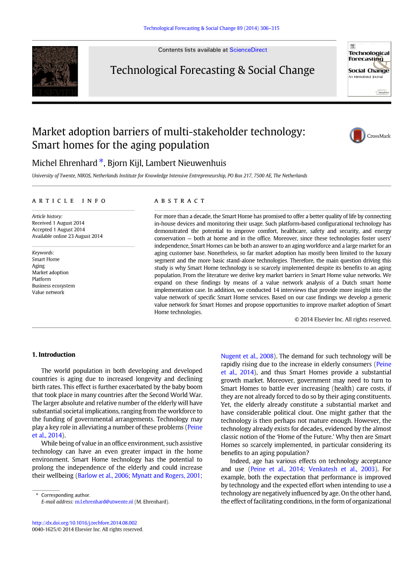 多利益相关者技术的市场采纳障碍:智能家庭的人口老龄化
