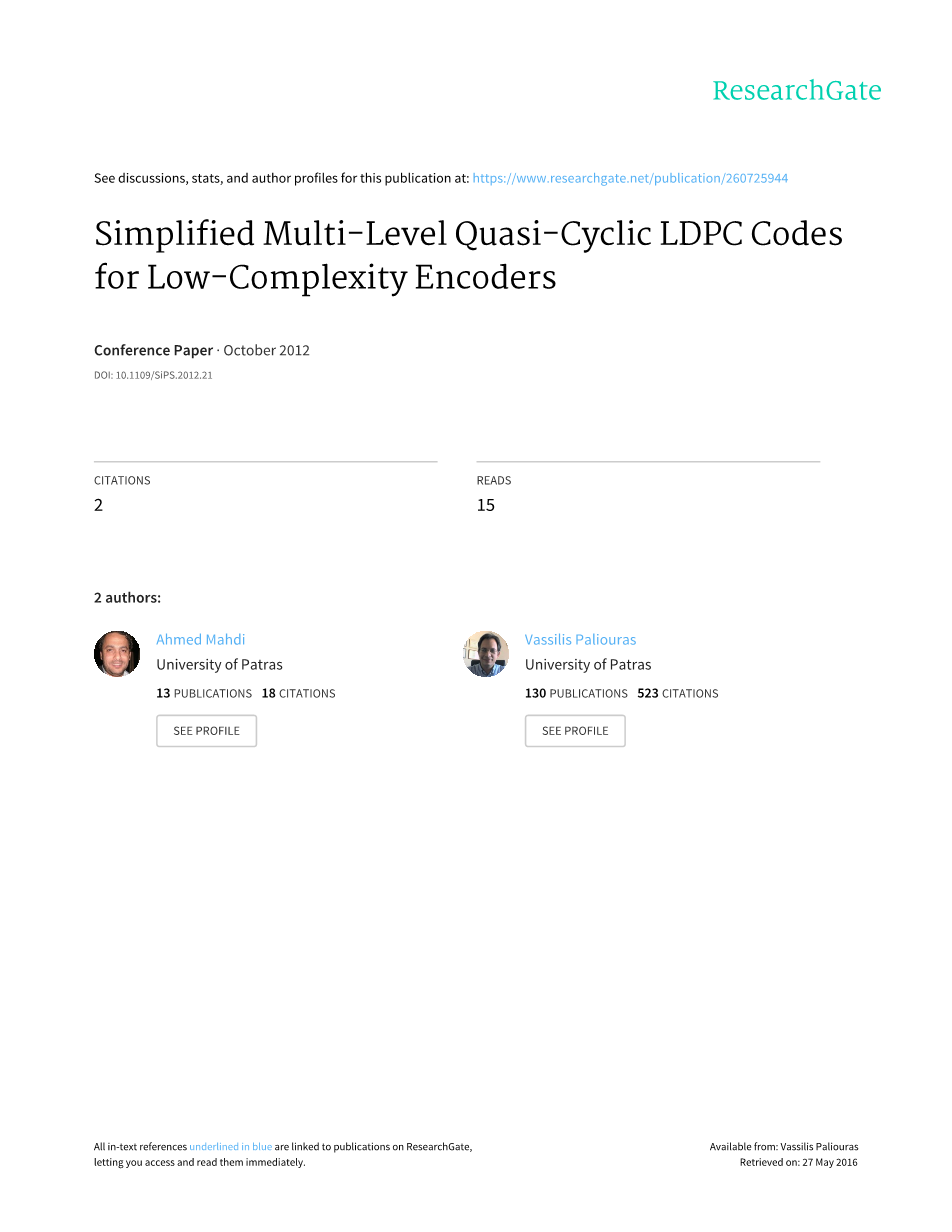 对于低复杂度编码器的简化的多层次的准循环LDPC码外文翻译资料