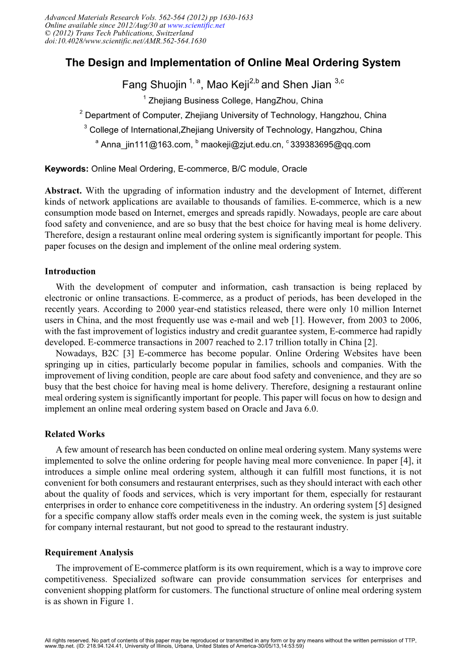 关键词:网上订餐,电子商务,B/ C模块,抽象