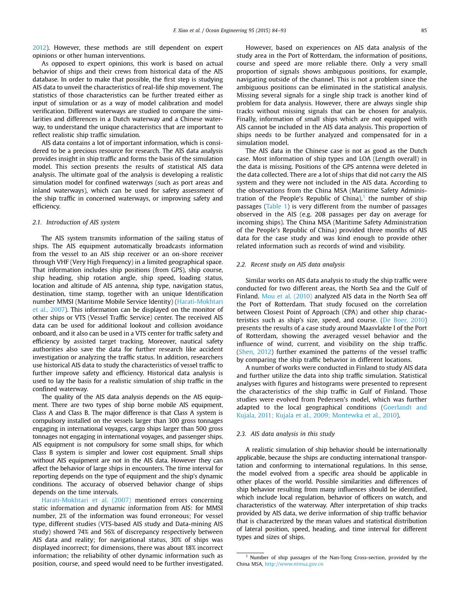 一个现实的模拟船舶行为应适用于这两种情况下,它应该能够在荷兰和中国的这两个航道上反映所有这些船舶行为的差异性和相似性。研究AIS数据需要两个步骤,首先我们分析提炼来自AIS数据信息,然后在这两种情况下,我们比较它们的相似性和差异性。
