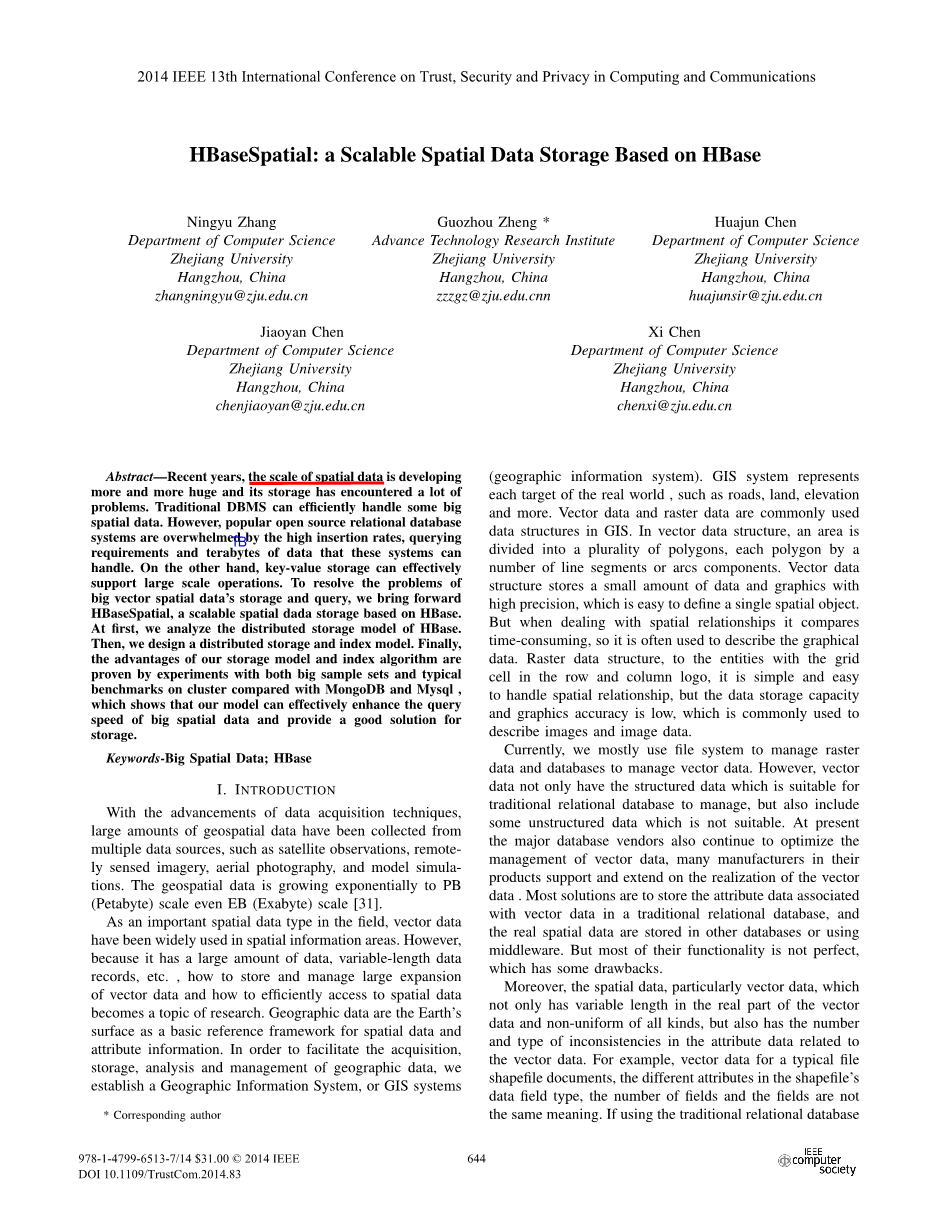 1)我们提出的分布式矢量空间数据存储和索引的设计基于HBase。