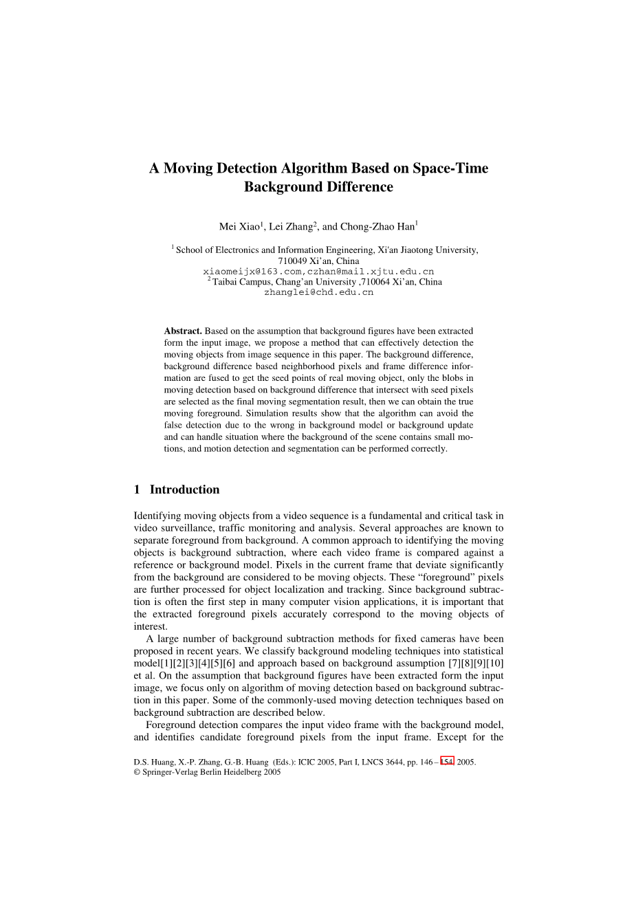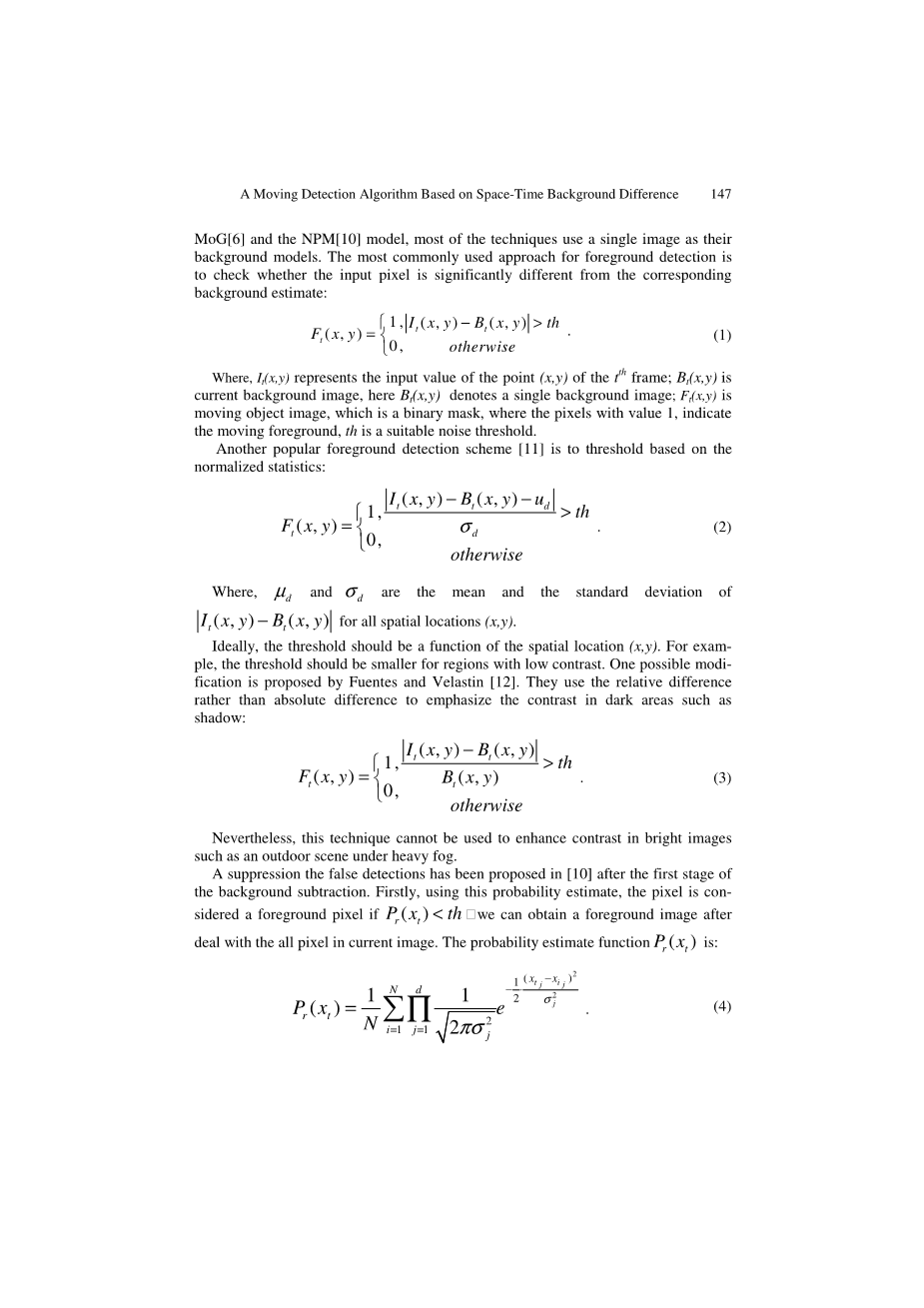 Key words: background difference;space-time information;motion detection;video sequence analysis