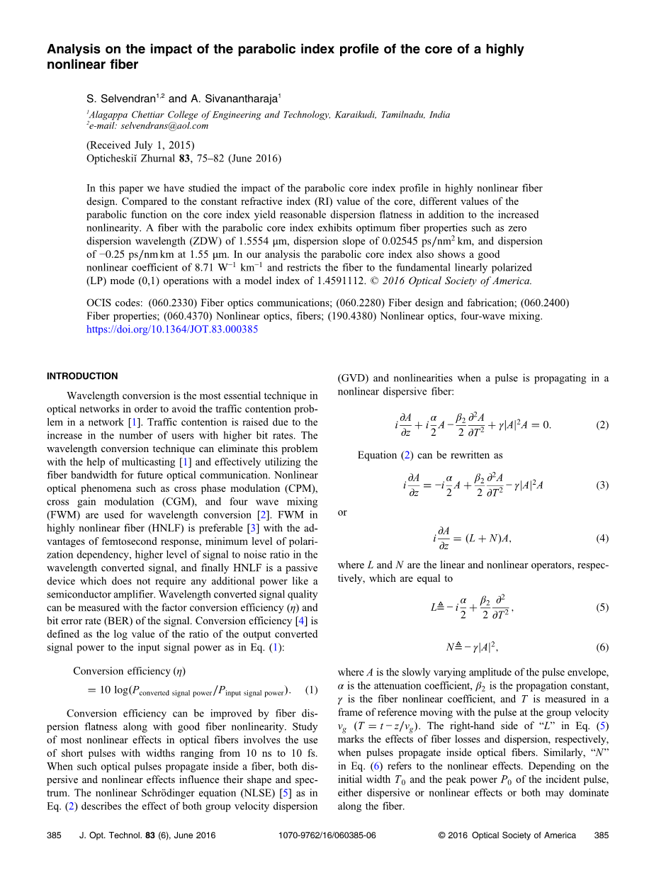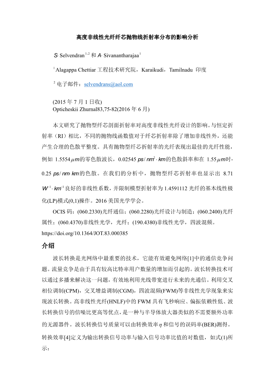 高度非线性管钱芯抛物线折射率分布的影响分析外文翻译资料