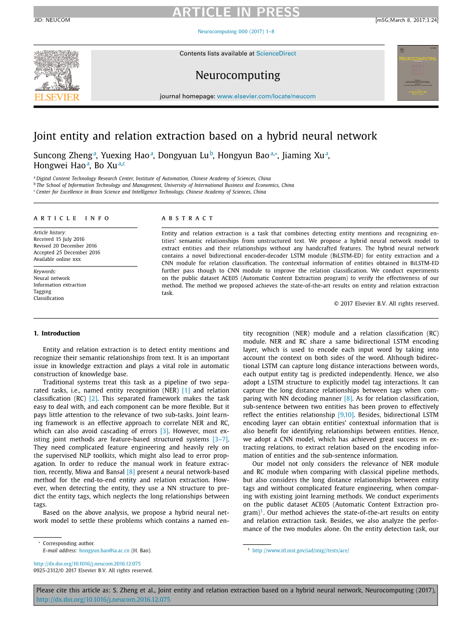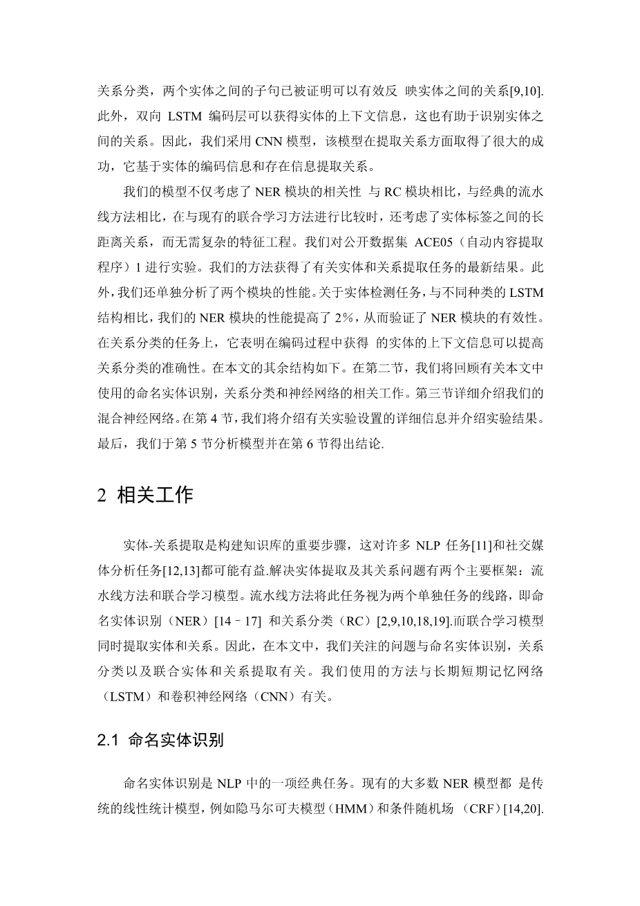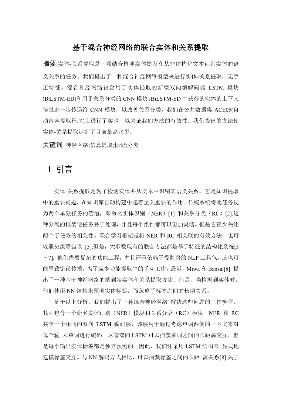 基于混合神经网络的联合实体和关系提取外文翻译资料
