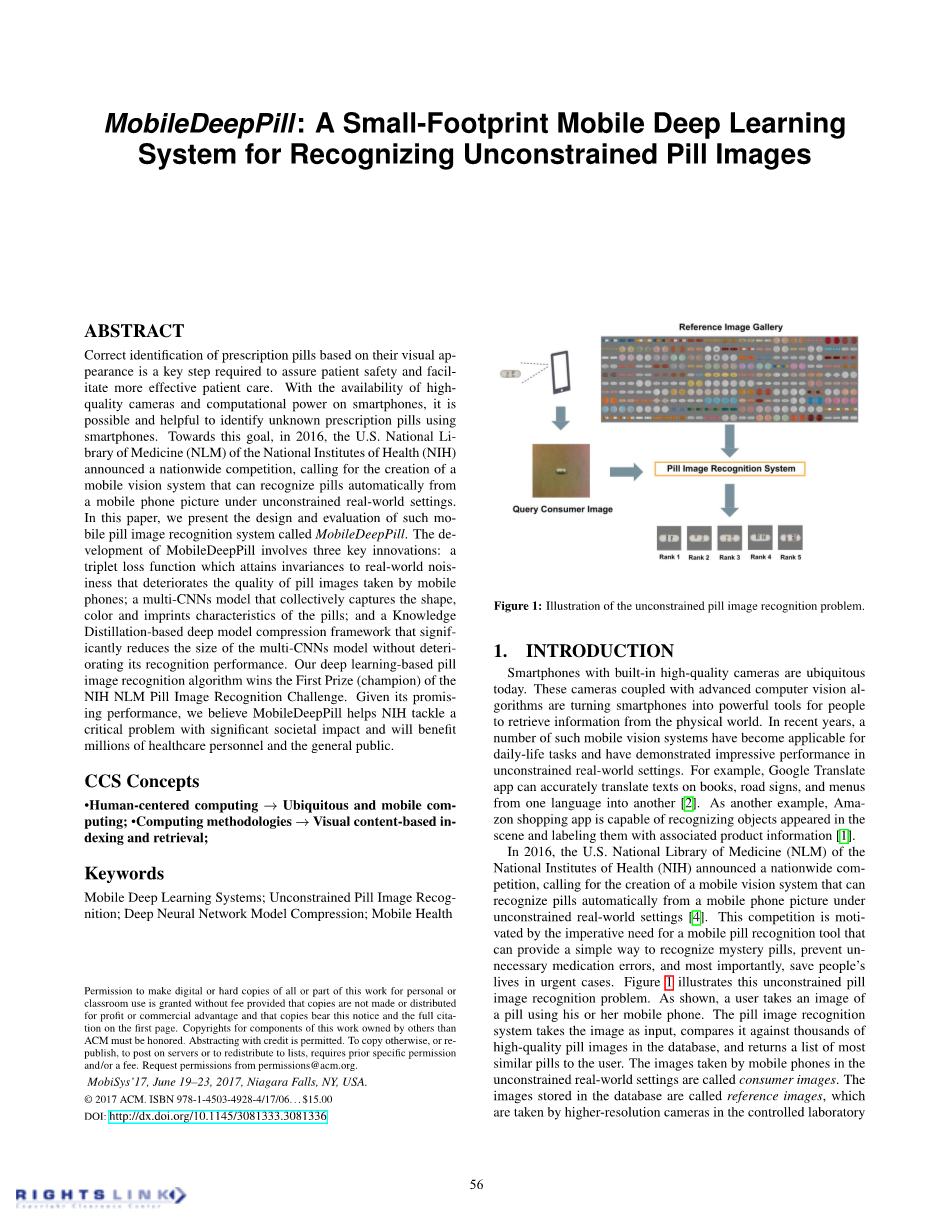 MobileDeepPill:用于识别不受约束的药丸图像的小型足迹移 动深度学习系统外文翻译资料